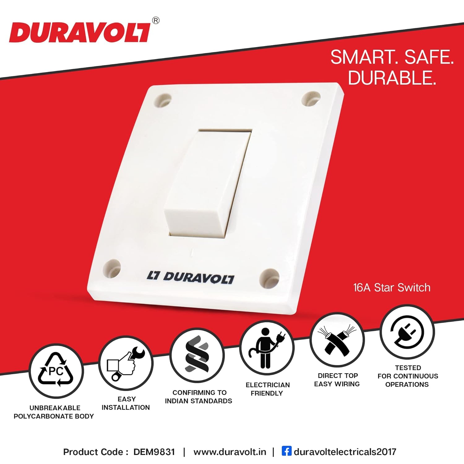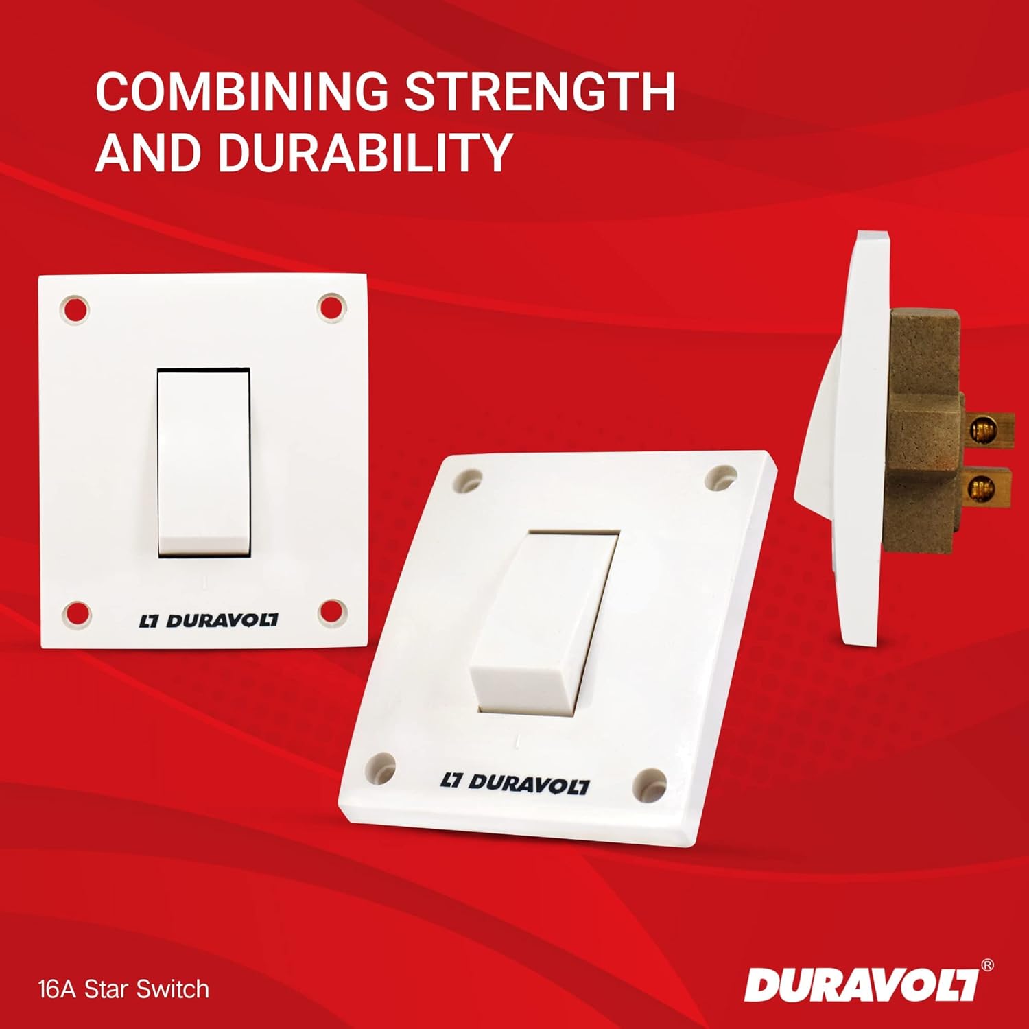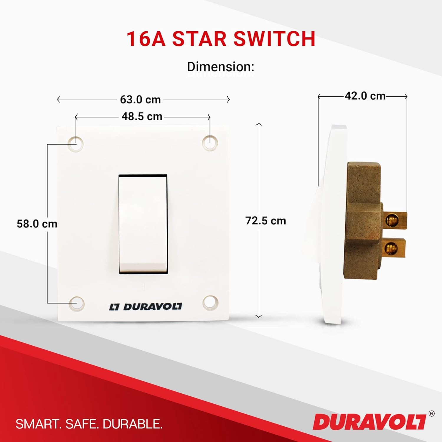 Duravolt Star 16A Non Modular Electrical Switch, White Colour, Polycarbonate Body, Heavy Duty,Suitable for Home & Office Use