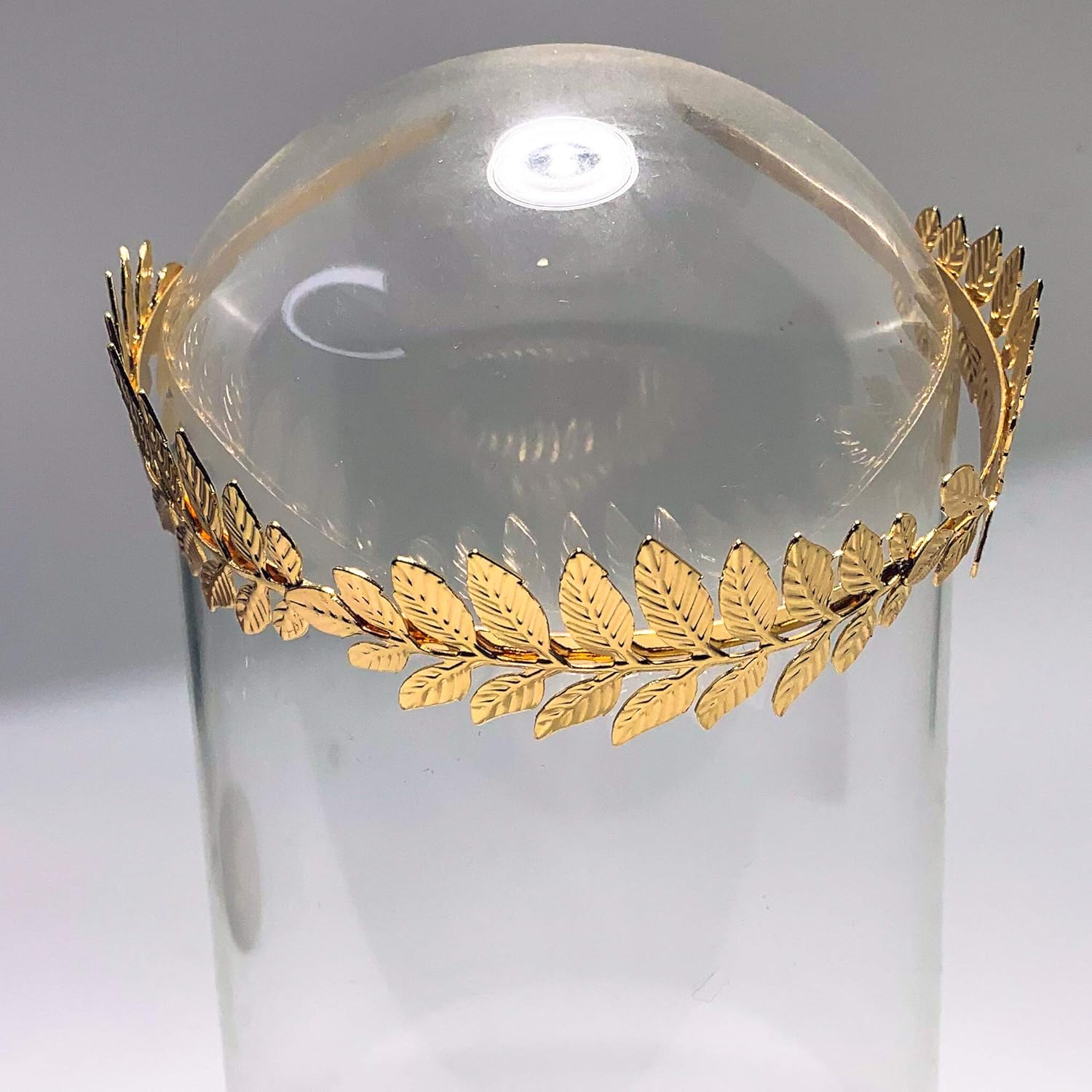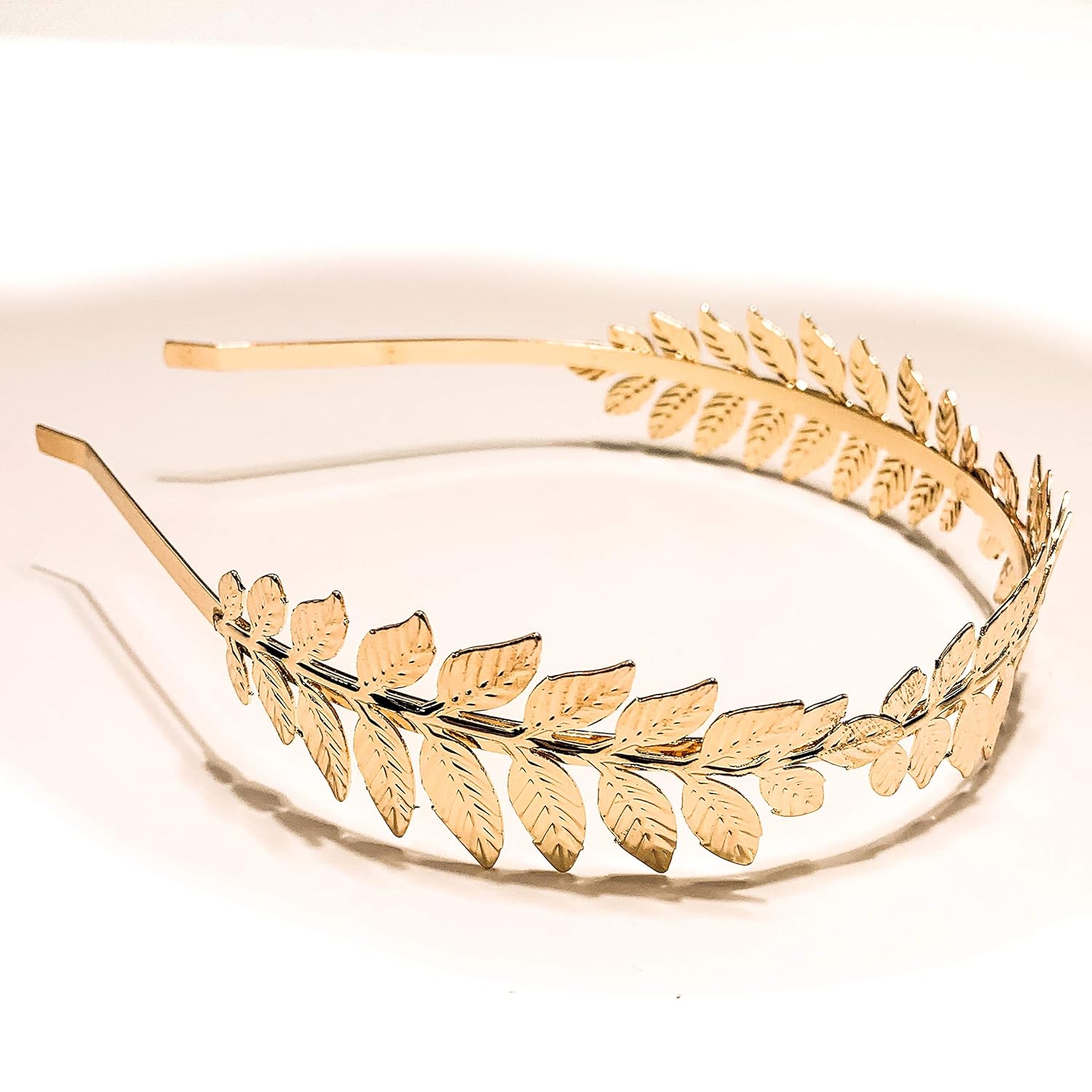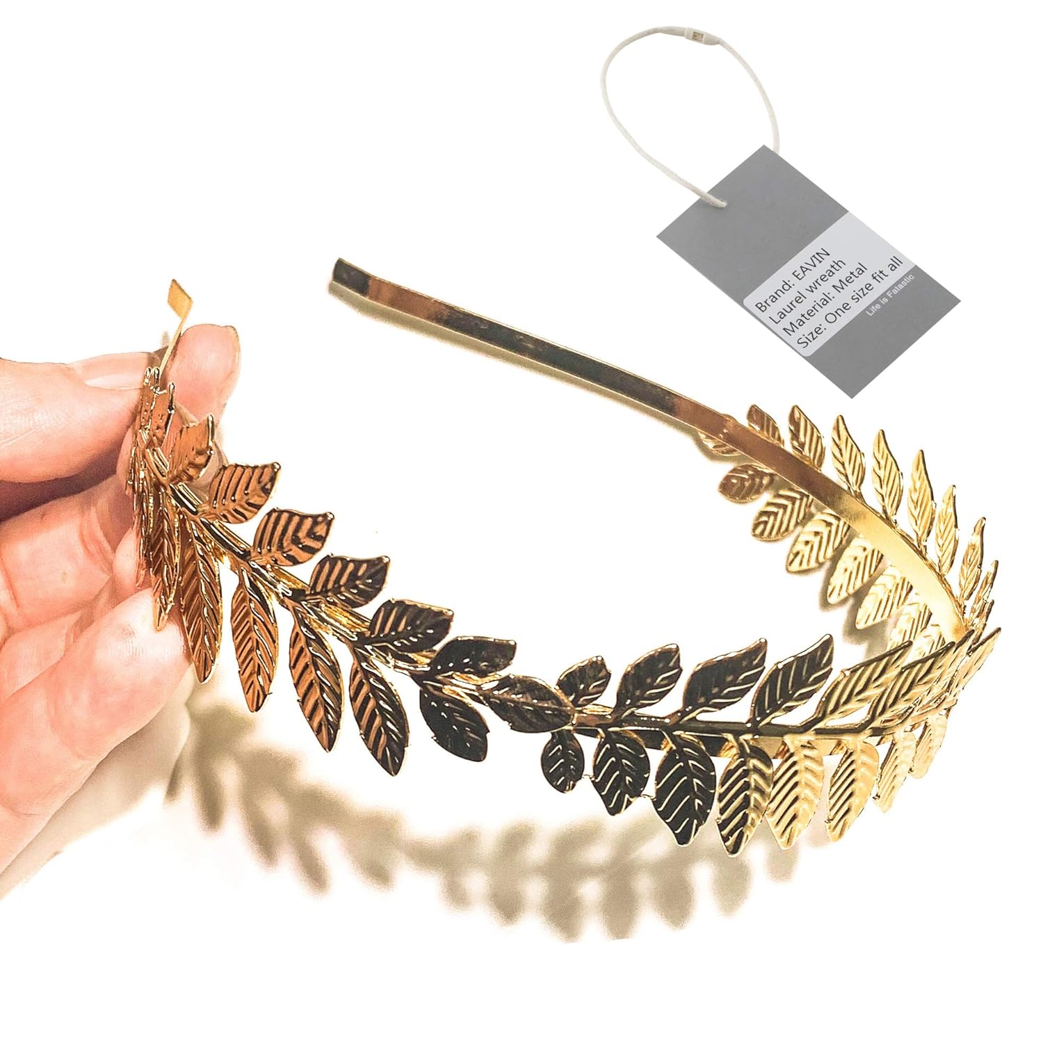 The gold headband is shaped with the delicate golden metallic laurel leaves. It is perfect for girls / women Greek goddess costume. Color: Gold Material: Gold plated brass Size: One Size Fits ALL (Adjustable) WARNING: CHOKING HAZARD — Small parts. Not for children under 4 yrs. Made by EAWIN.