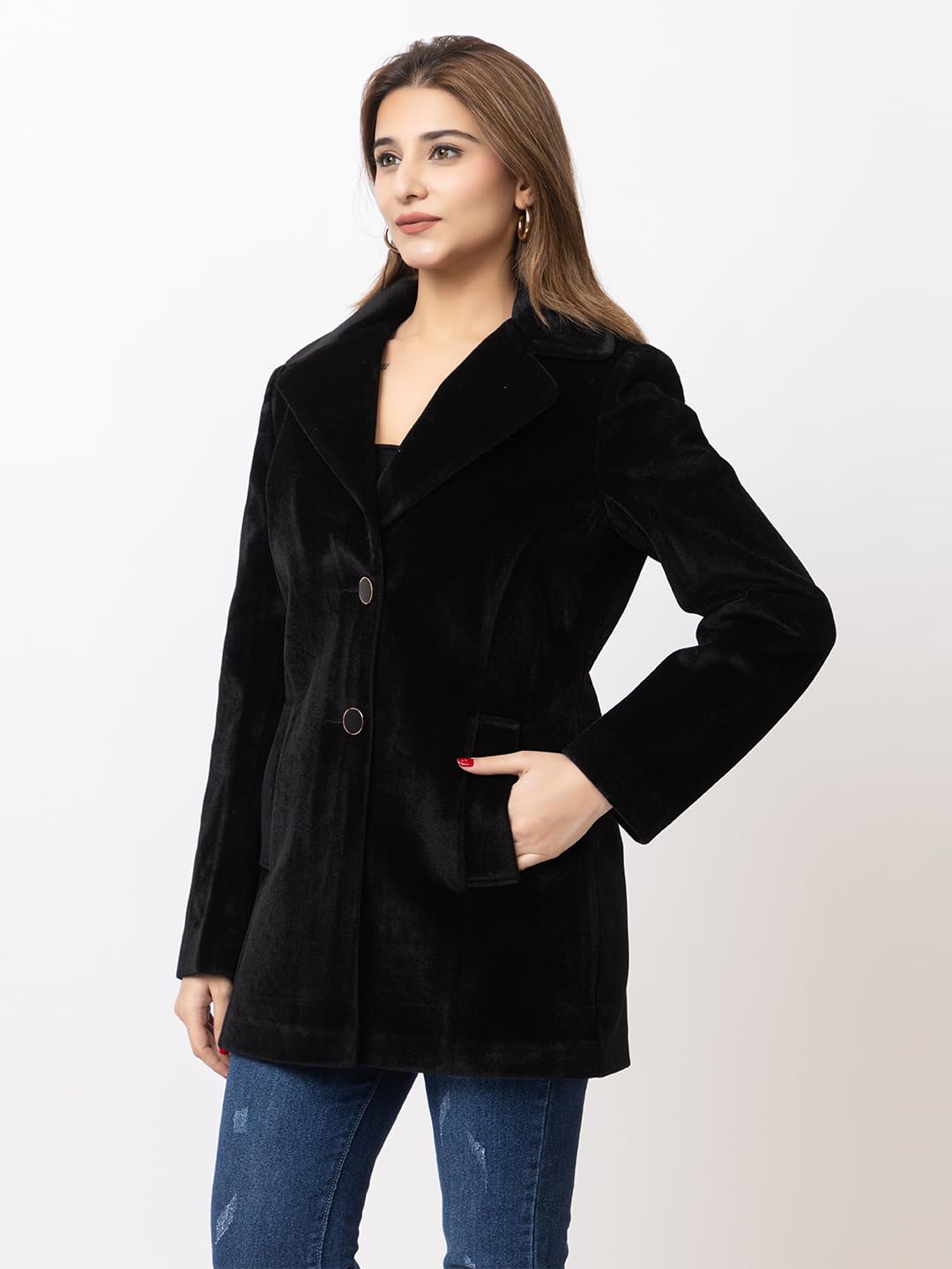 Eleveight Women Notch Lapel Collar Traditional Coat With Two Buttons, Two Diagonal pockets. Feel the warmth in the chilly winter & lend in style with this woolen coat from the house of Eleveight. This beautiful piece can belayered over any casual to formal attire while going out.