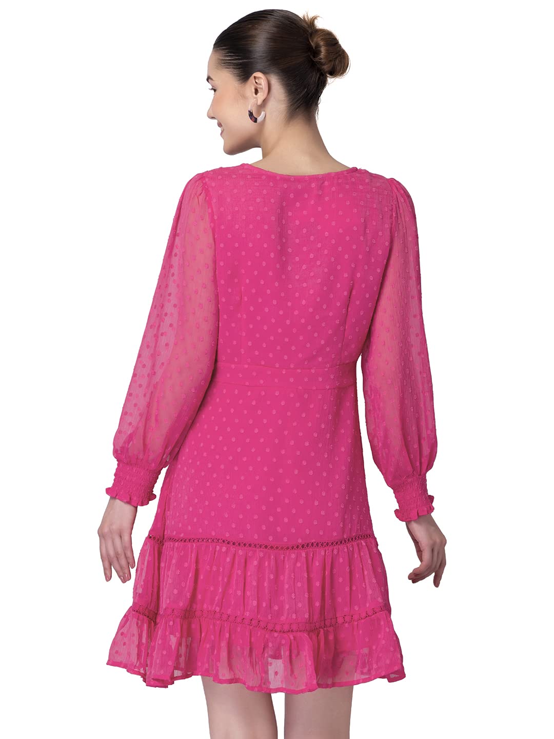 Generic Name : Hot Pink Ruffled Wrap Dress