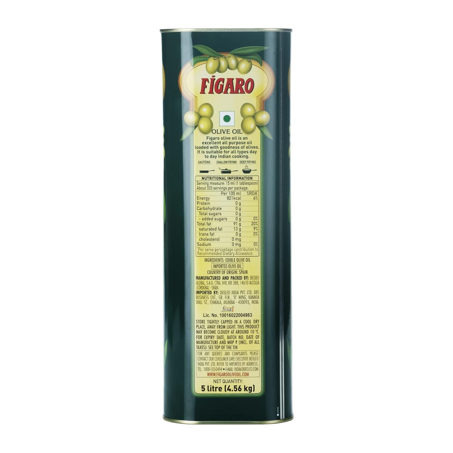 Figaro Pure Olive Oil is an excellent all-purpose cooking olive oil that imparts a delicious flavour to your daily food. Can be used for sauteing, roasting, frying and baking.