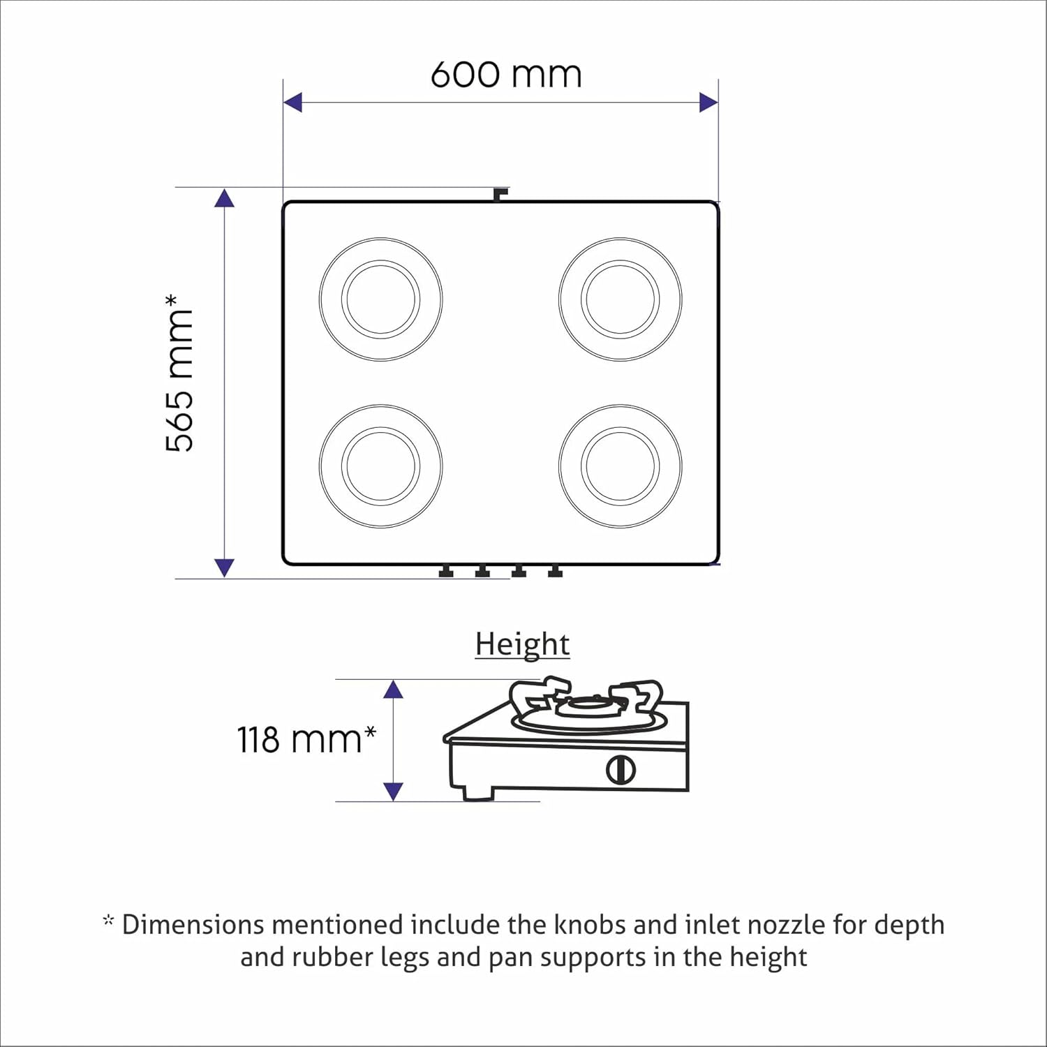 Knobs & Feet: The premium-quality knobs provide a smooth operation and a firm grip, ensuring safe and hassle-free cooking. The anti-skid feet keep the stove stable on any surface, ensuring that it stays in place.