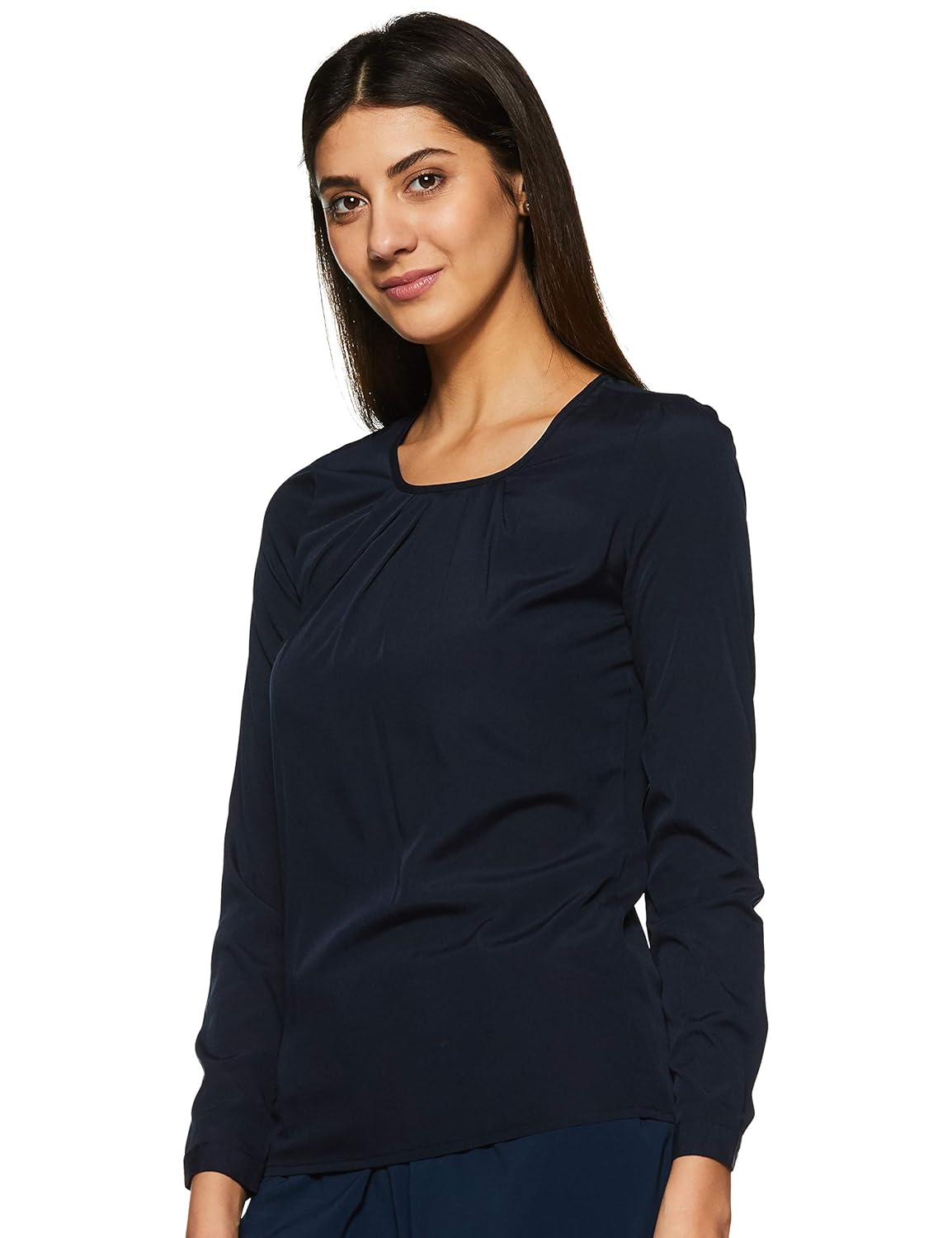 Get in touch with your feminine side wearing orange coloured top by harpa. Made from crepe, this regular fit top will keep you comfortable in summers. This top can be paired with basic blue coloured jeans and sneakers.