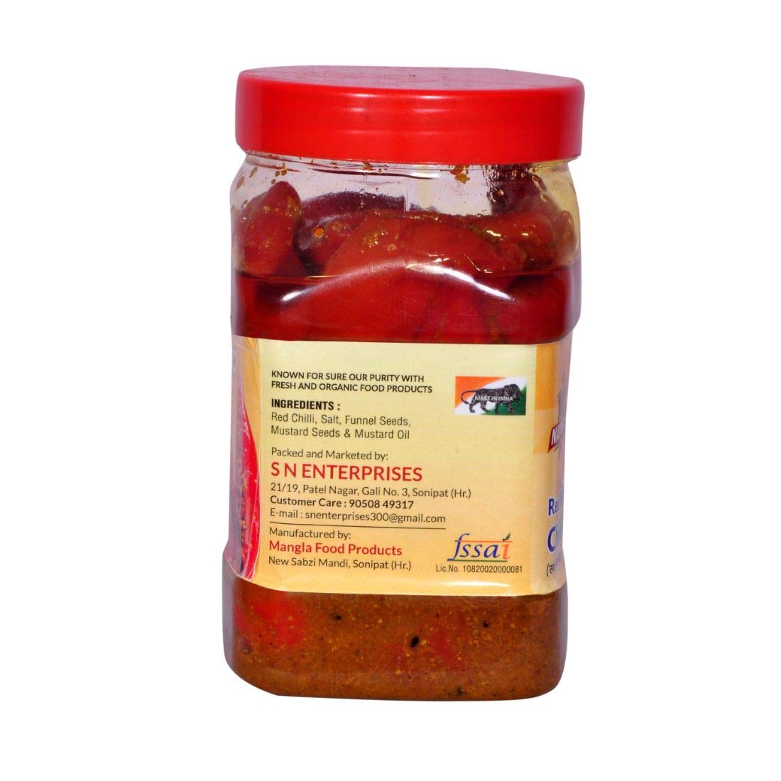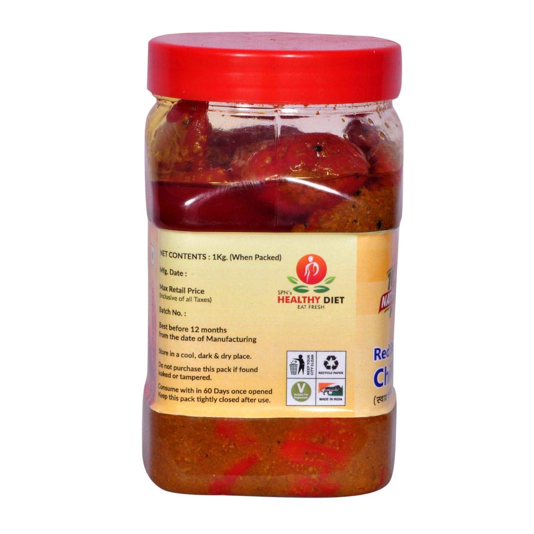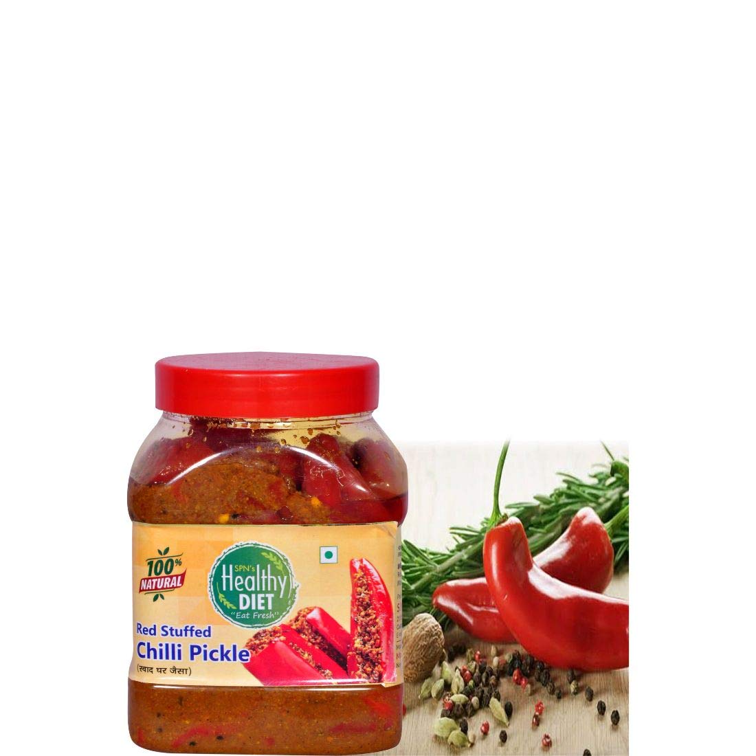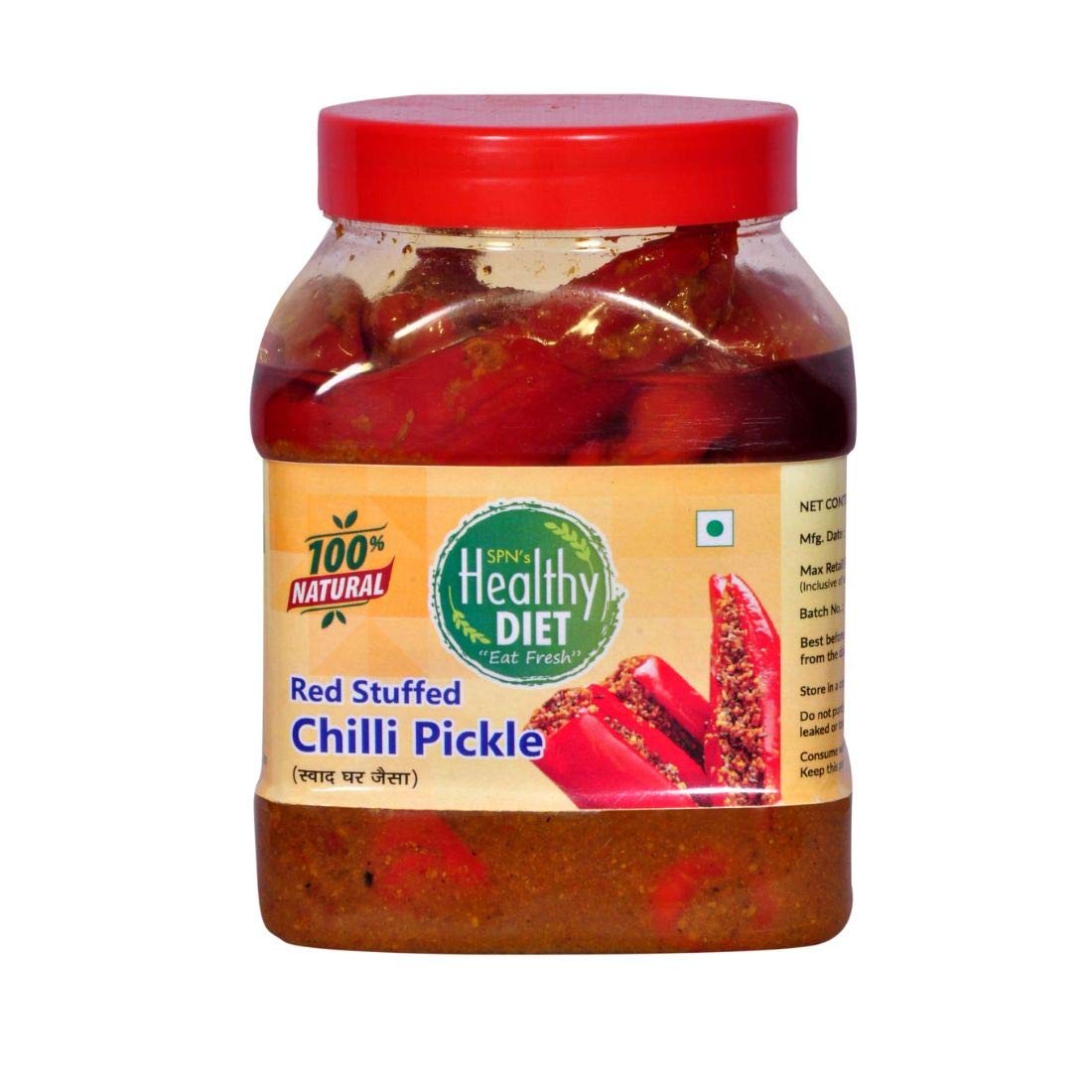 Mouthwatering Red Chilli pickle is Natural, Hygienic and organic product by Healthy Diet, gives FANTASTIC TASTE.Made by Natural Technique, No Artificial Flavor added.Fresh and Very high quality Chilli, and Pure Mustard Oil used during Process.having preserved age of 12 monthsimprove the nutritional value of food.