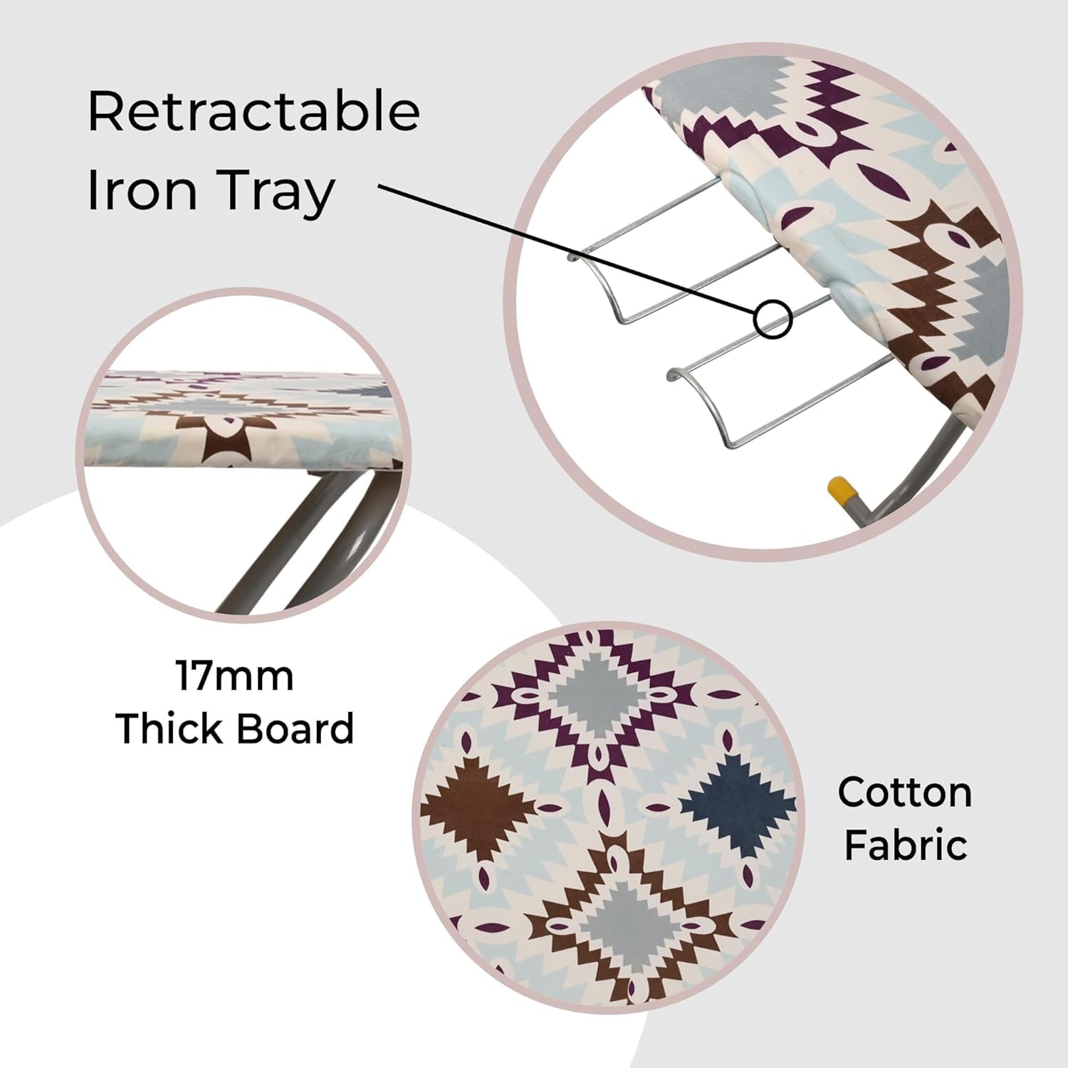 This iron board is designed for your daily ironing needs, offering a quick pressing board that saves time when you need to iron clothes. It is foldable, so you can easily store it in your home without taking up much space. This board makes sure your sarees and clothes are pressed neatly because it provides a stable surface, which helps you iron more effectively. The iron board for ironing clothes includes features that enhance convenience because it can be used at home for various garments, making your ironing routine simpler.