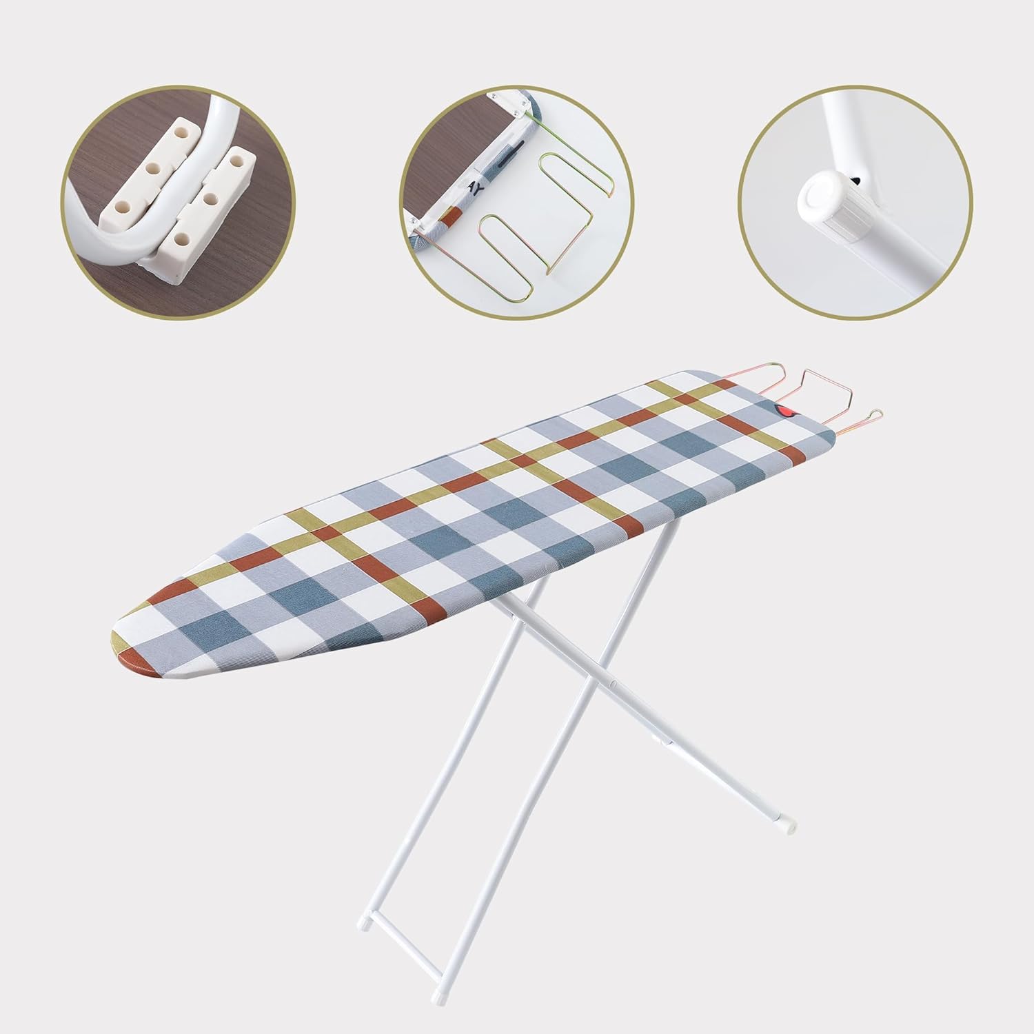 IRON REST INCLUDED WITH QUICK AND EASY SETUP : The Heart Home Ironing Board comes equipped with everything you need for a smooth ironing experience. The built-in iron rest provides a safe and convenient spot to set down your hot iron while you’re prepping garments. Plus, the quick and easy setup allows you to assemble the board in no time, so you can skip the frustration and get straight to achieving those crisp, wrinkle-free clothes.