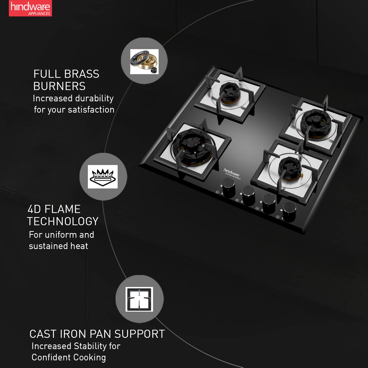 4D Flame Technology: This range of kitchen hobs features 4D flame technology for uniform and sustained heat. The zig-zag pattern on the burners renders a multi-dimensional flame which ensures optimum flame efficiency and looks aesthetically appealing.