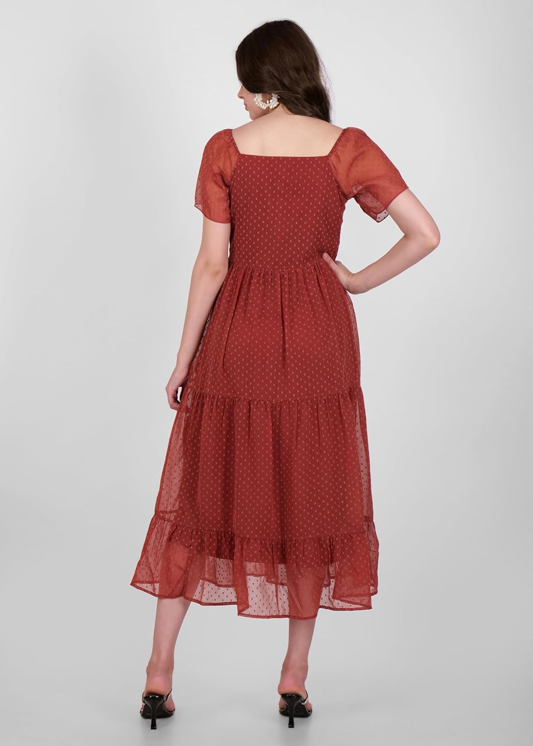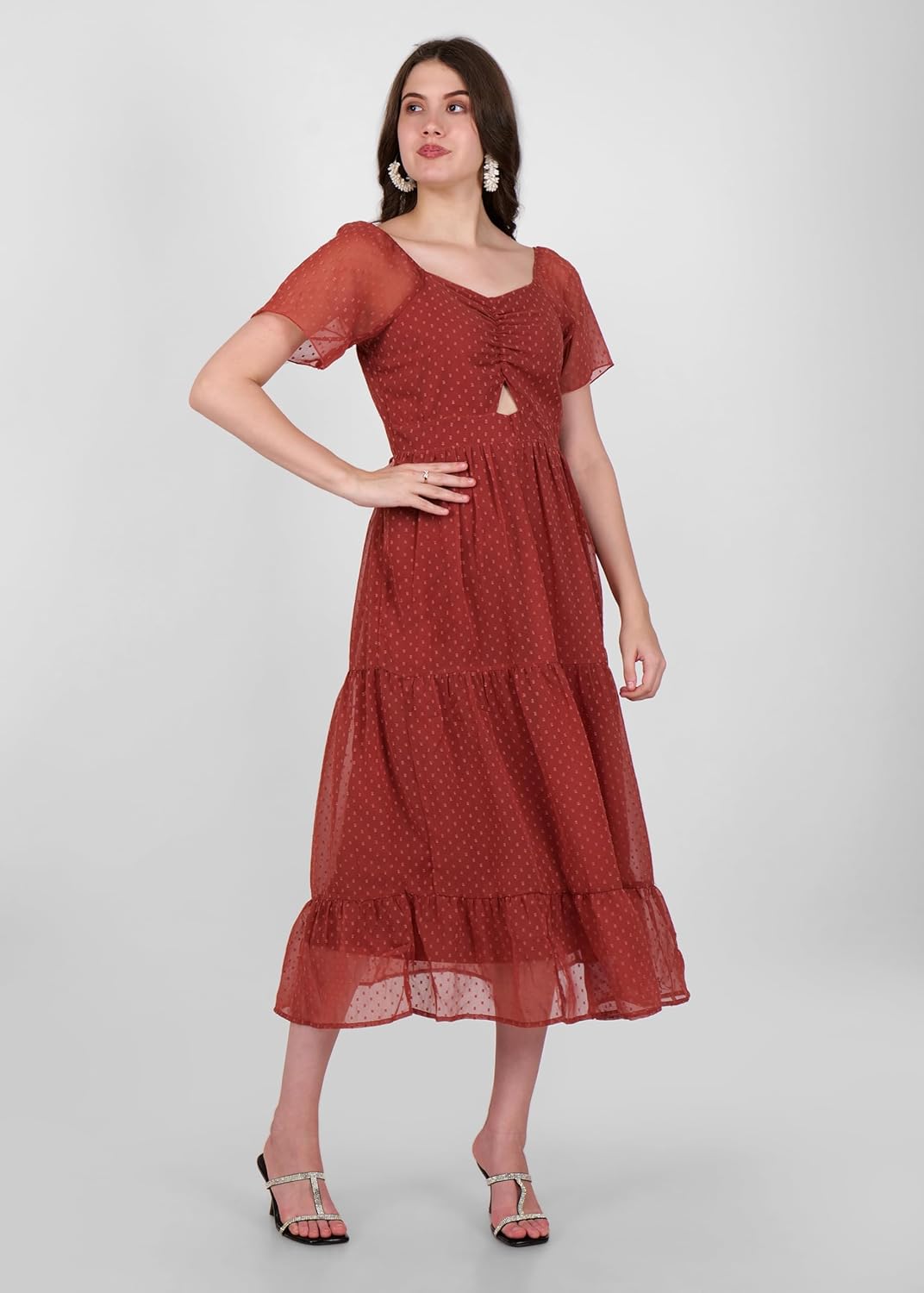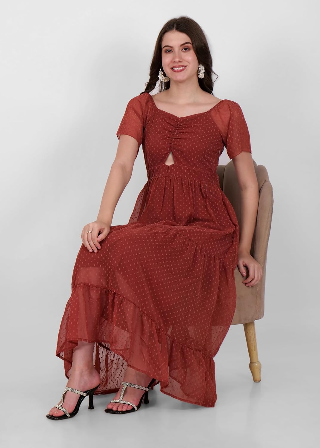 The Hiza Women’s Fit and Flare Midi Dress is a stylish and versatile piece perfect for both casual and semi-formal occasions. Crafted from lightweight Dobby Georgette fabric with a comfortable polyester lining, this dress offers a breathable yet elegant feel. The design features a flattering sweetheart neckline and chic half sleeves, adding a touch of sophistication to the overall look. A unique triangular waist cut-out detail enhances the silhouette, creating a modern twist to the classic fit-and-flare shape. Whether you’re heading to a brunch or an evening out, this dress is a perfect choice for a fashionable and feminine statement. The triangular cut-out at the waist, adding a unique and trendy element to the overall look. This feature gives the dress a modern twist, making it more than just a simple fit-and-flare dress. The midi length of the dress adds to its versatility, making it easy to pair with both casual sandals or dressier heels, depending on the occasion. Whether you’re heading to a daytime gathering with friends, a casual dinner, or even a semi-formal event, this dress has the right balance of elegance and ease. With its chic design, comfortable fit, and stylish details, the Hiza Women’s Fit and Flare Midi Dress is a wardrobe essential for any woman looking to make a statement while staying comfortable.