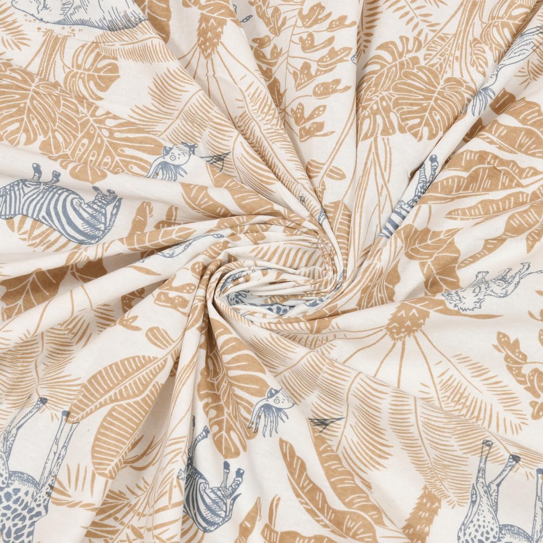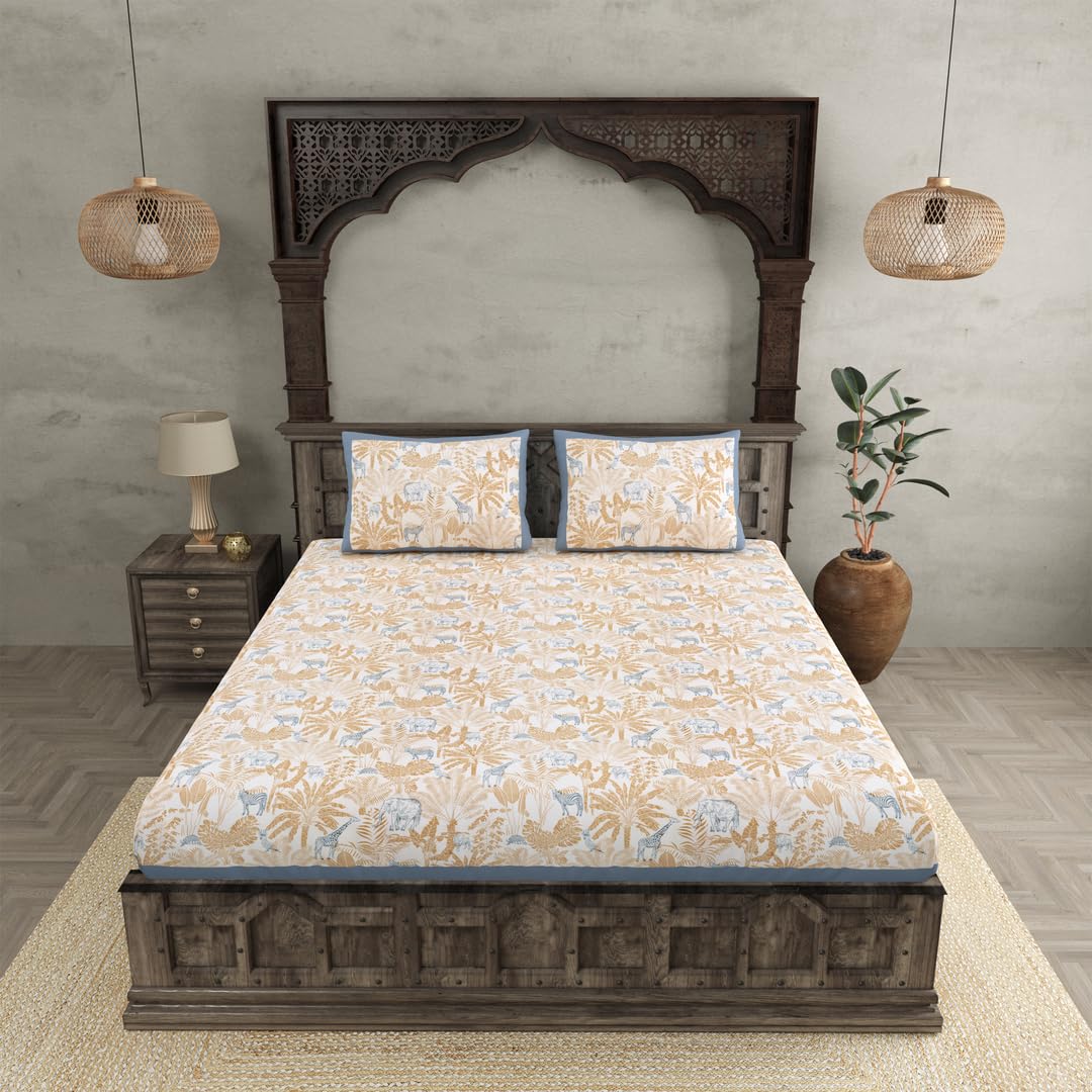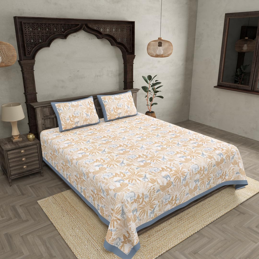 JaipurFabric® 290 TC Premium Cotton Jungle Themed Double Bedsheet with 2 Pillow Covers(118″ X 118″), Beige