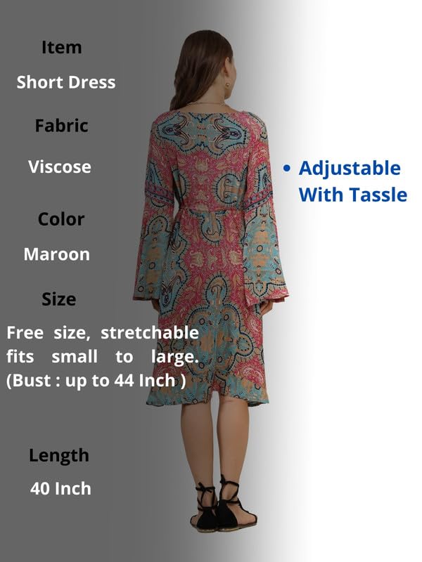 Size: Free Size (Stretchable from Small to Large) Bust: Up to 46 inches Length: 38 inchesPattern: Short DressColor: Multi-colorNet Quantity: 1Fabric: ViscoseLength: Mid-lengthCountry of Origin: India (Engineered in Italy and proudly made in India)Wash Care:Hand wash Machine wash on a delicate or gentle cycle