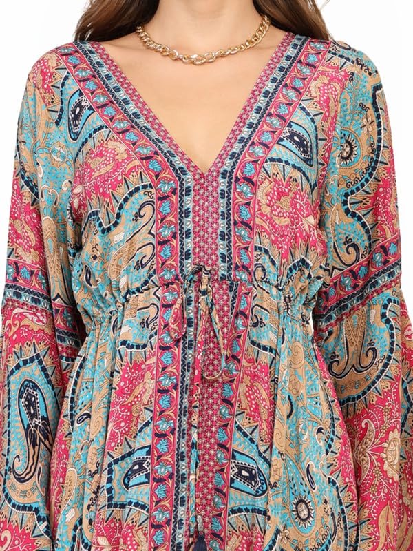Product Type: Resort wear, LoungewearColor: Multi-colorSize: Free size fit for small, medium, large (Bust max: 56 inches, Length: 36 inches)Pattern: KaftanFabric: ViscoseLength: Mid-lengthNet Quantity: 1Country of Origin: India (Engineered in Italy, made in India)Wash Care: Hand wash or machine wash on a delicate/gentle cycleAdditional Uses: Christmas Gift, Luxury Silk Dressing Gown, Silk Pool Cover-ups, Cruise Kaftan