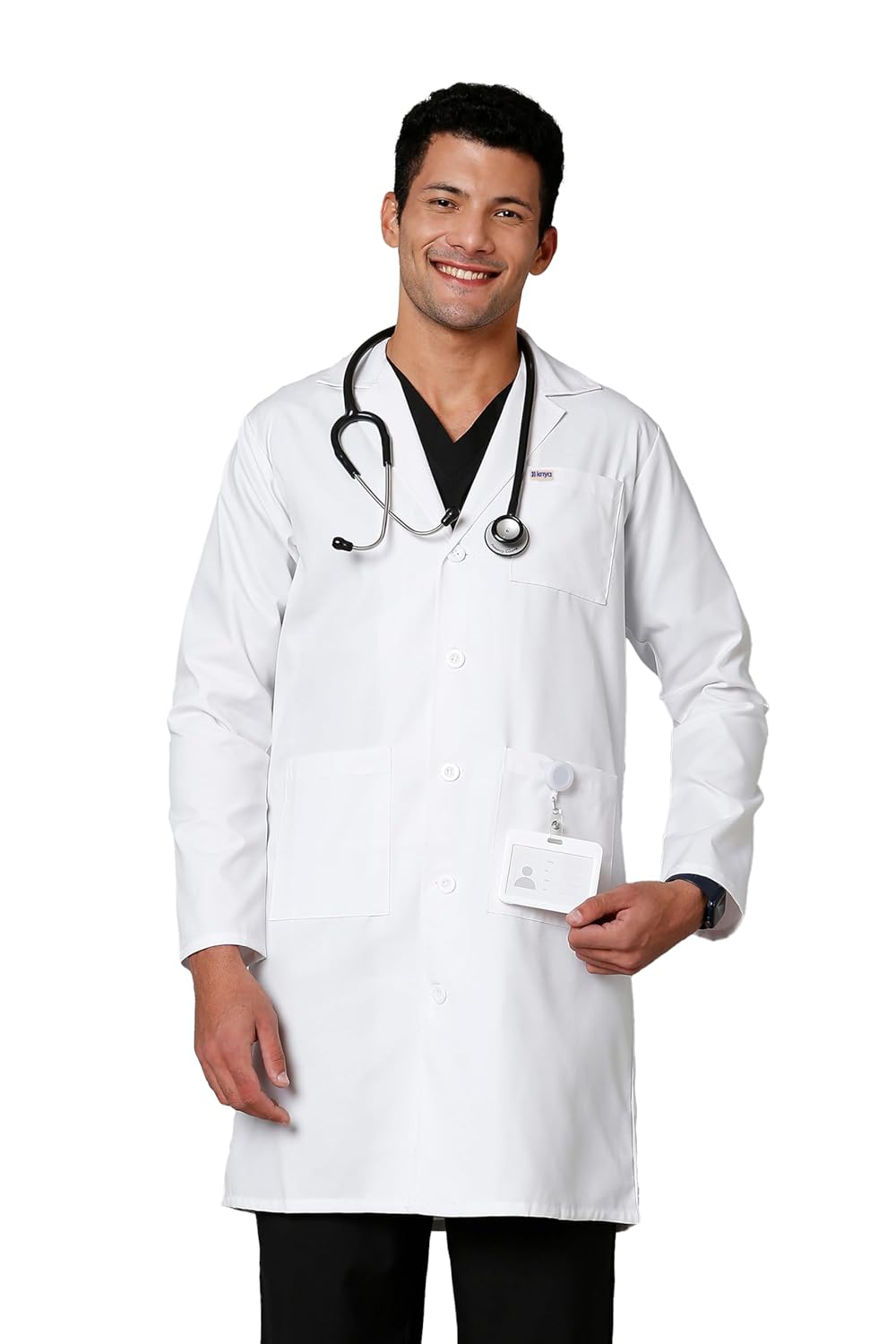 Durable: Made from 100% Polyester, this lab coat apron is built to last repeated washes without compromising quality or appearance.
