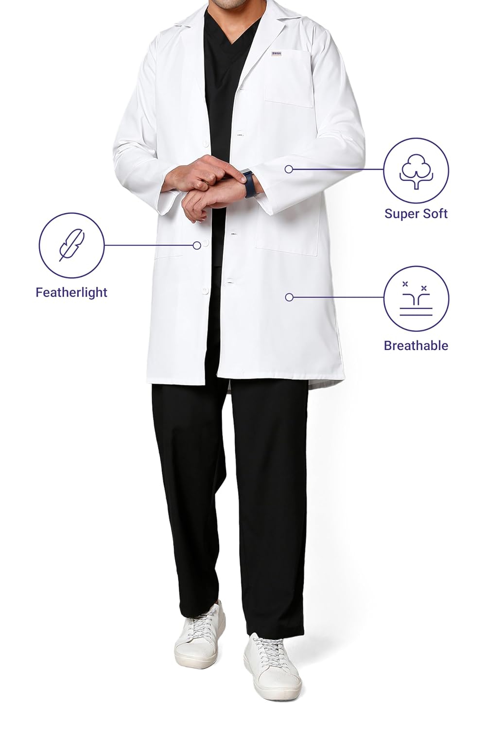 Customers find the lab coat’s material soft and breathable. The size receives mixed feedback, with some finding it adequate while others say the medium size is extremely big. The quality and value for money also get mixed reviews, with several customers reporting bad fabric quality and considering it not worth the price.