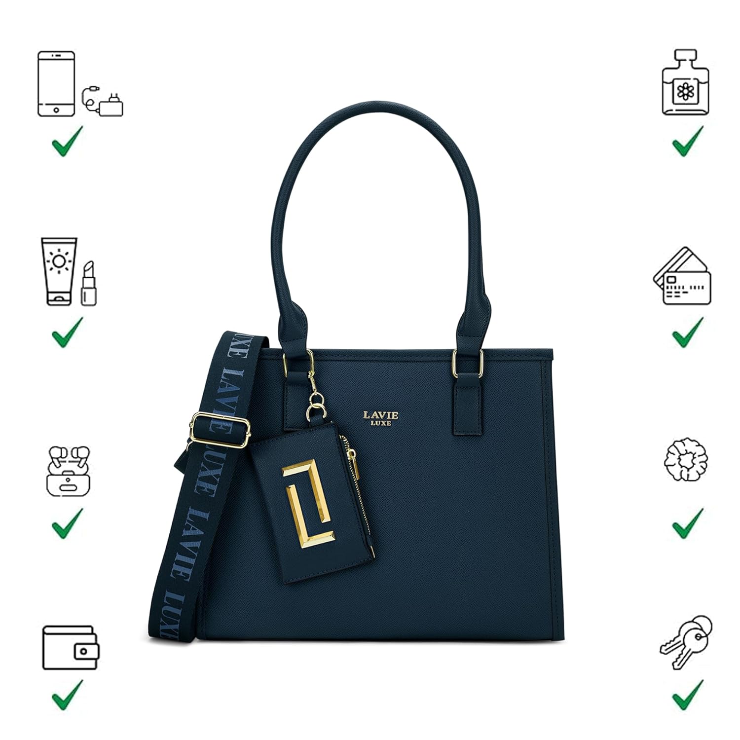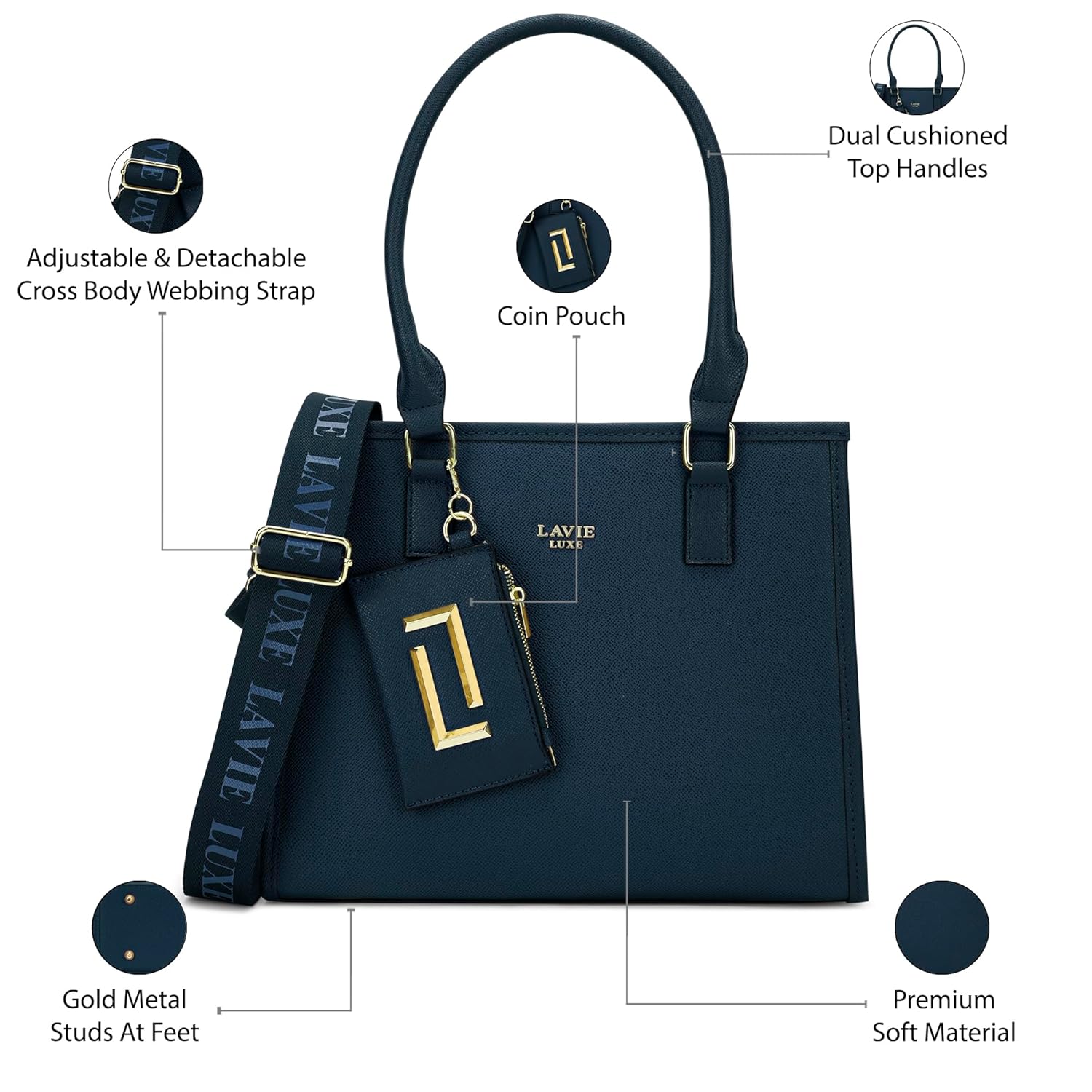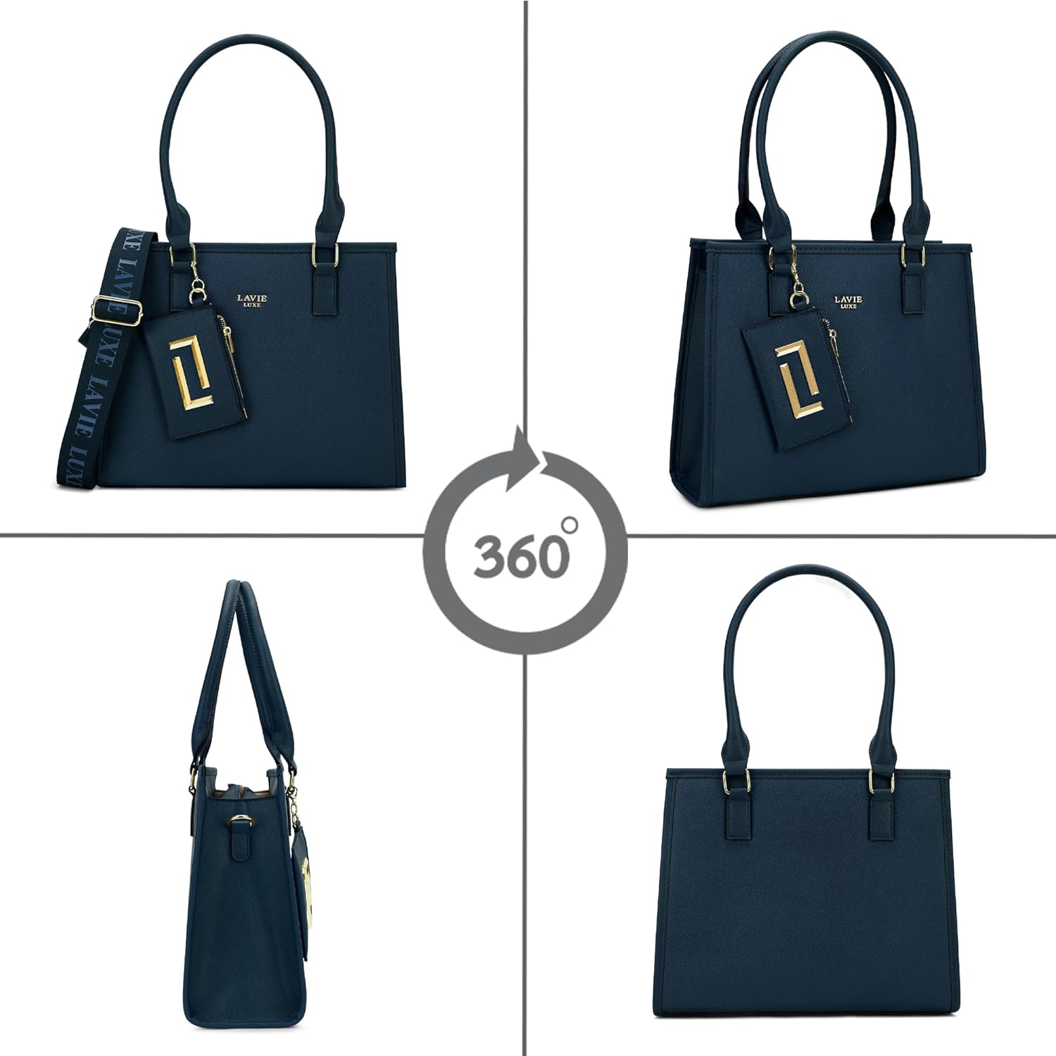 The Hailon Tote by Lavie is a Large-sized satchel in tonal colors & a high shine logo on the front. Top zip closure for safety. The interior has 2 compartments, Round dual handles & an adjustable sling strap.