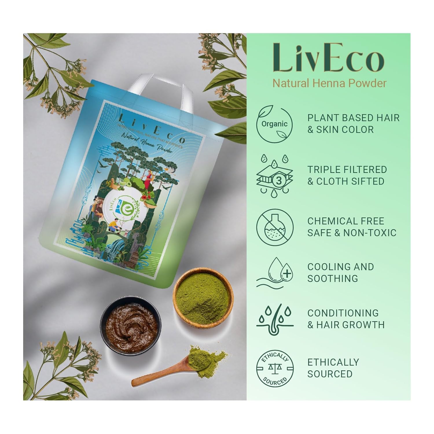 Being Ethically Sourced, Whether you have dry, oily, or normal hair, LivEco’s henna powder is gentle and nourishing, advancing healthy hair growth. Our quality powder, being filtered very well, ensures a smooth paste and easy application for your convenience.