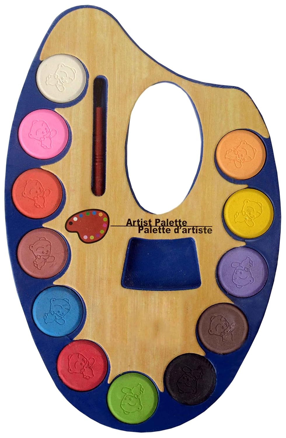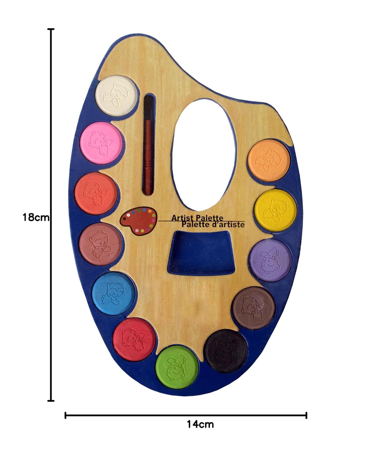 Size : Length (18 CM), Width (14 CM), Hight (1.5 CM), Medium Artistic Palettes with 12 Water Color Set and Artist Paint Brush.