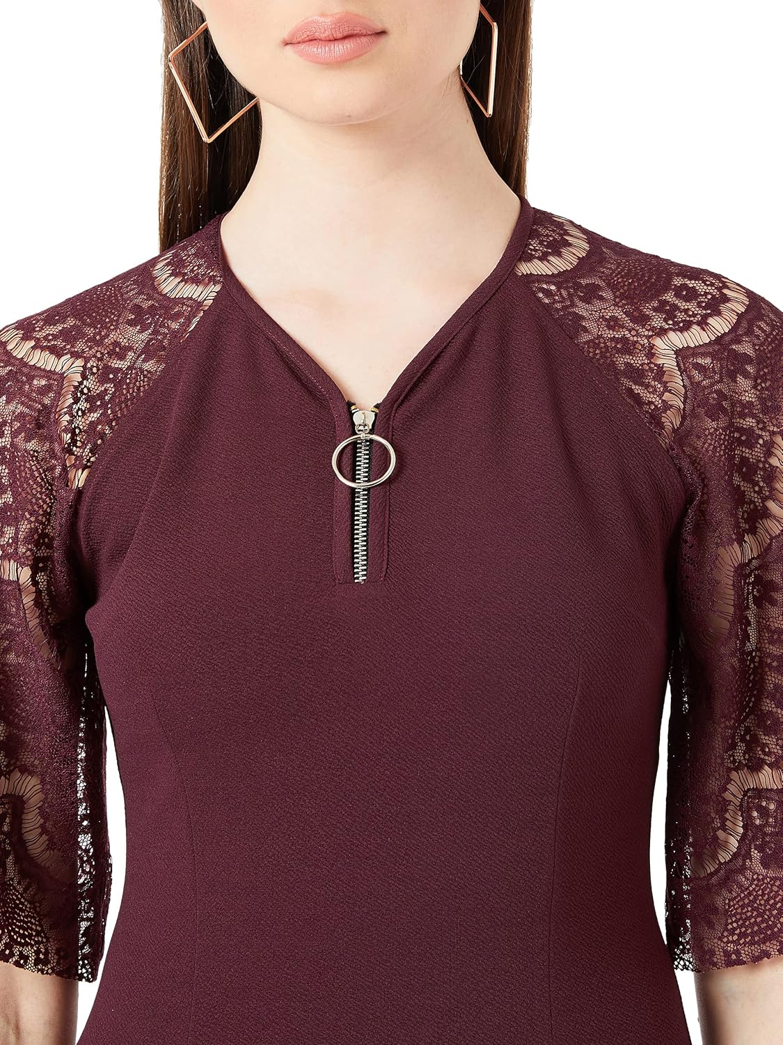 Generic Name : Miss Chase Women’s Designer Wine Red V-Neck Flared Sleeves Solid Knee-Length Bodycon Dress (MCSS20D14-35-184_Wine Red_S)