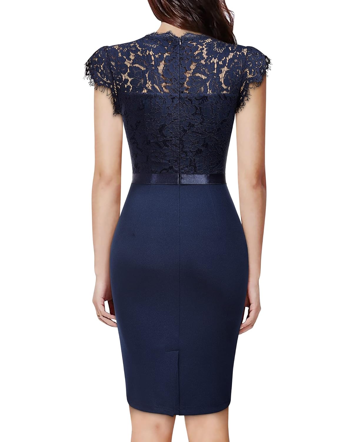 Miusol Women’s Elegant Floral Lace Ruffle Design Cap Sleeve Cocktail Party Dress Suit for Cocktail Party, Wedding Guest Wearing and Evening Club