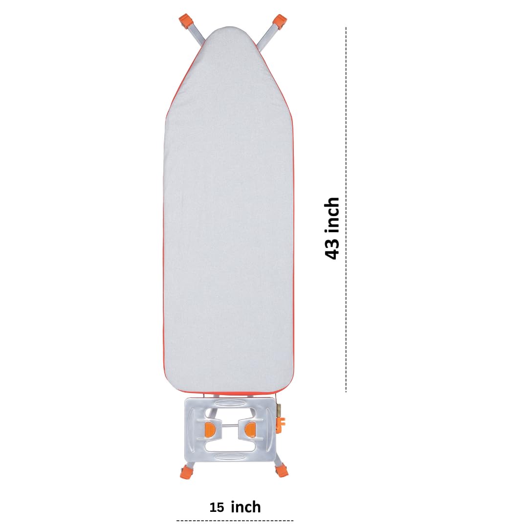 SIZE- Moreyaji Ironing Board with Iron Rest features a working area of 43 x 15 inches. Stand Size 110 x 38 x 10 (H x W x L).