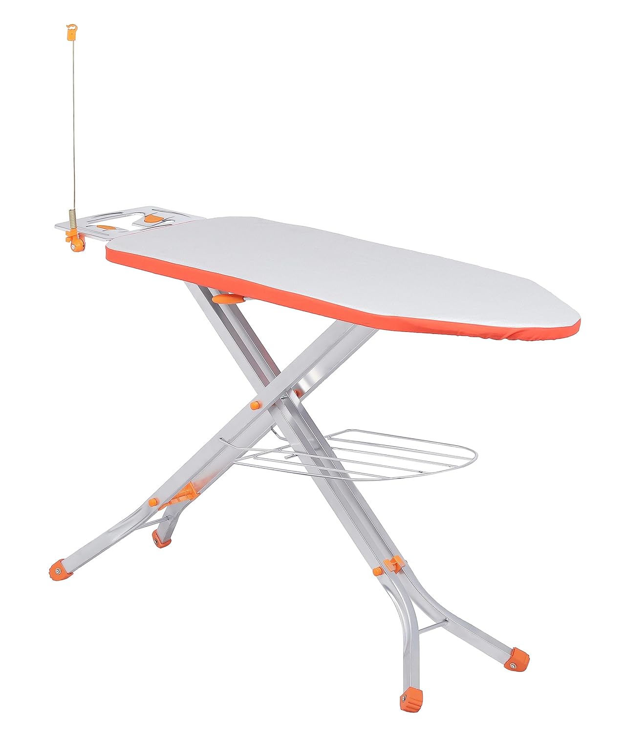 LARGE MULTI-FUNCTION TRAY: A built-in, extendable tray is always within easy reach so you can conveniently stack clothes while ironing.