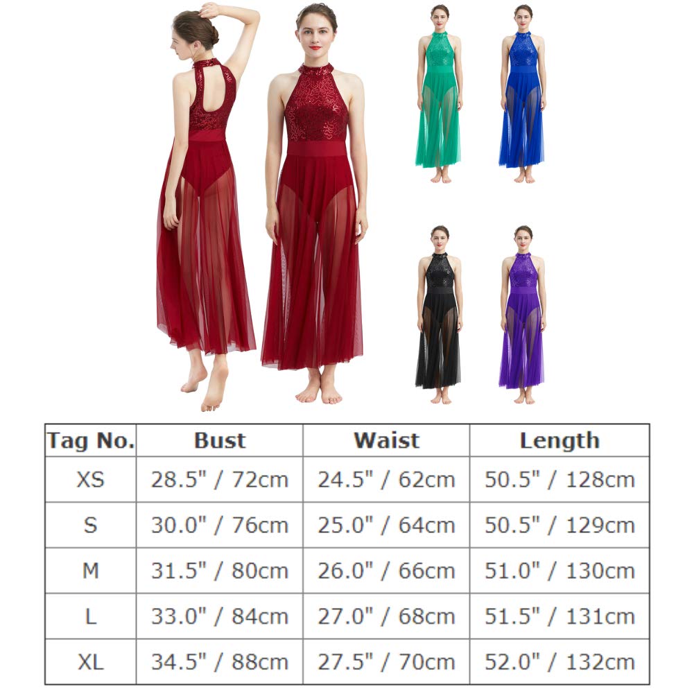 Elegant Women Lyrical Modern Contemporary Dance Dress Shiny Sequins Halter Neck Open Back Tulle Maxi Long Dresses Dancewear