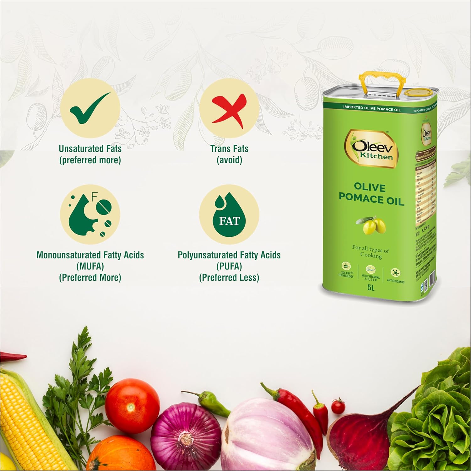 Modern times have made it imperative to maintain a healthy lifestyle. A healthy lifestyle is one of the result of oil we use in our diet. Oleev pomace oil has a neutral flavour and is the perfect choice for all types of cooking. It has a high smoke point which makes it ideal for deep frying and is rich in nutrients like vitamin E and K, providing a healthy diet to suit a healthy lifestyle. Oleev pomace oil is ideal for everyday cooking. It is also suitable for deep frying. Vitamin E in Oleev pomace oil improves body’s defence mechanism. It shields the body from infections and helps healing tissues; both internal and external. Due to its composition, the oil has unrivalled value making it the perfect oil for all ages. Oleev pomace oil has a large quantity of vitamin K that aids faster healing and helps improve bone density and strength. It helps us digest and absorb our meals easily. MUFA in Oleev pomace is the healthiest type of fat that promotes heart health and helps prevent a host of ailments such as high blood pressure, cholesterol etc. With more variety on the platter, Oleev pomace is looked at as the panacea to all health problems, without compromising on taste.