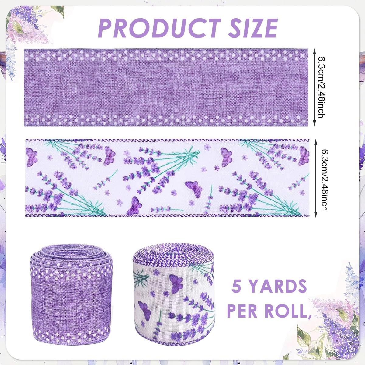 2 Rolls Fabric Ribbon Purple Butterfly Floral Printed Ribbon Belts for Gift Wrapping 6.3cm x 5ft Cuttable Decorative Rustic Fabric Ribbon for Scrapbooking, Card Making, DIY Embellishments
