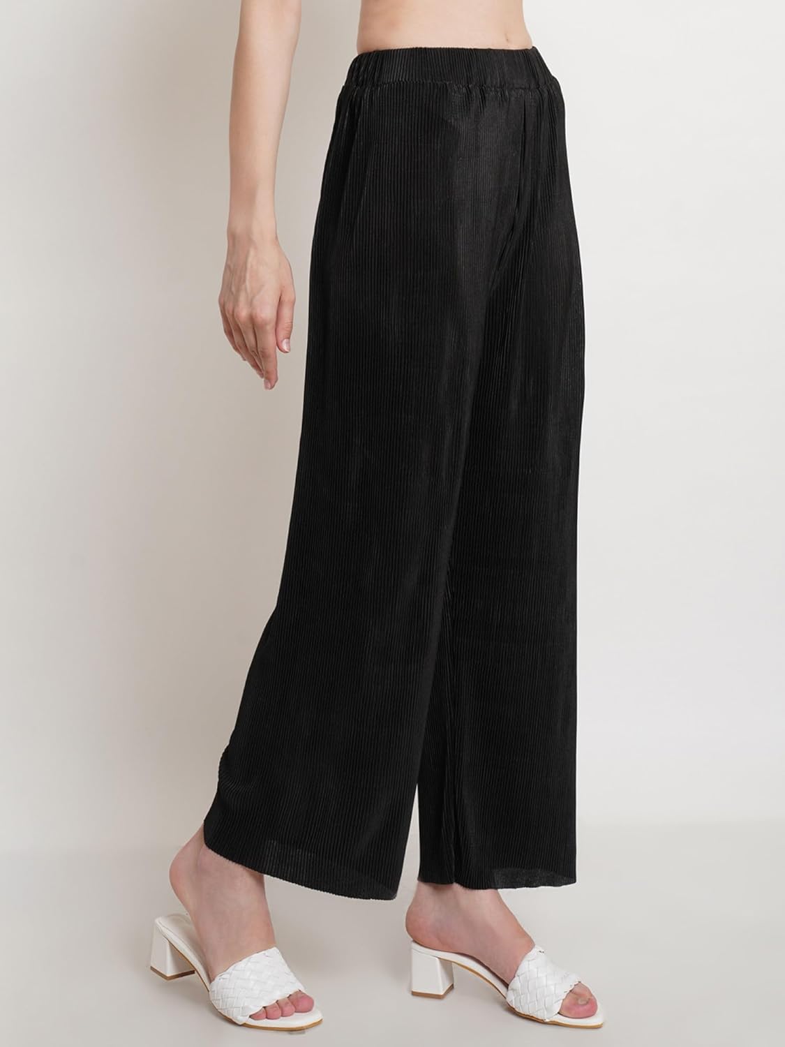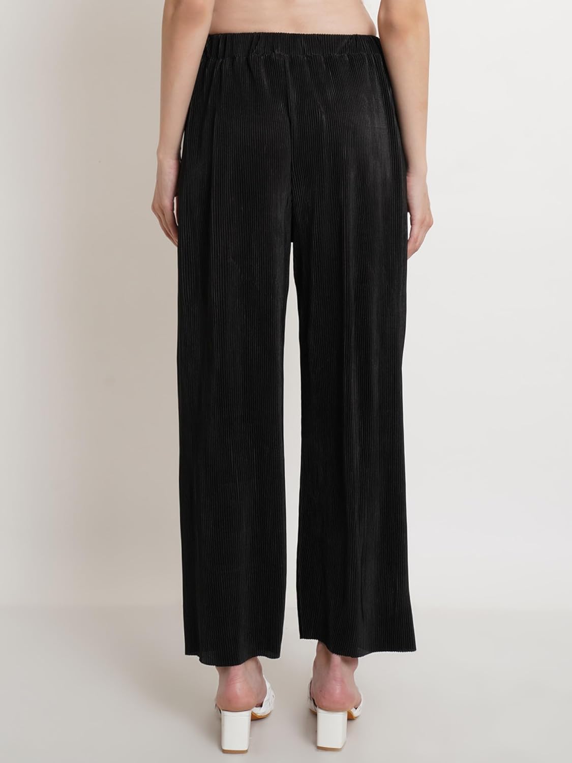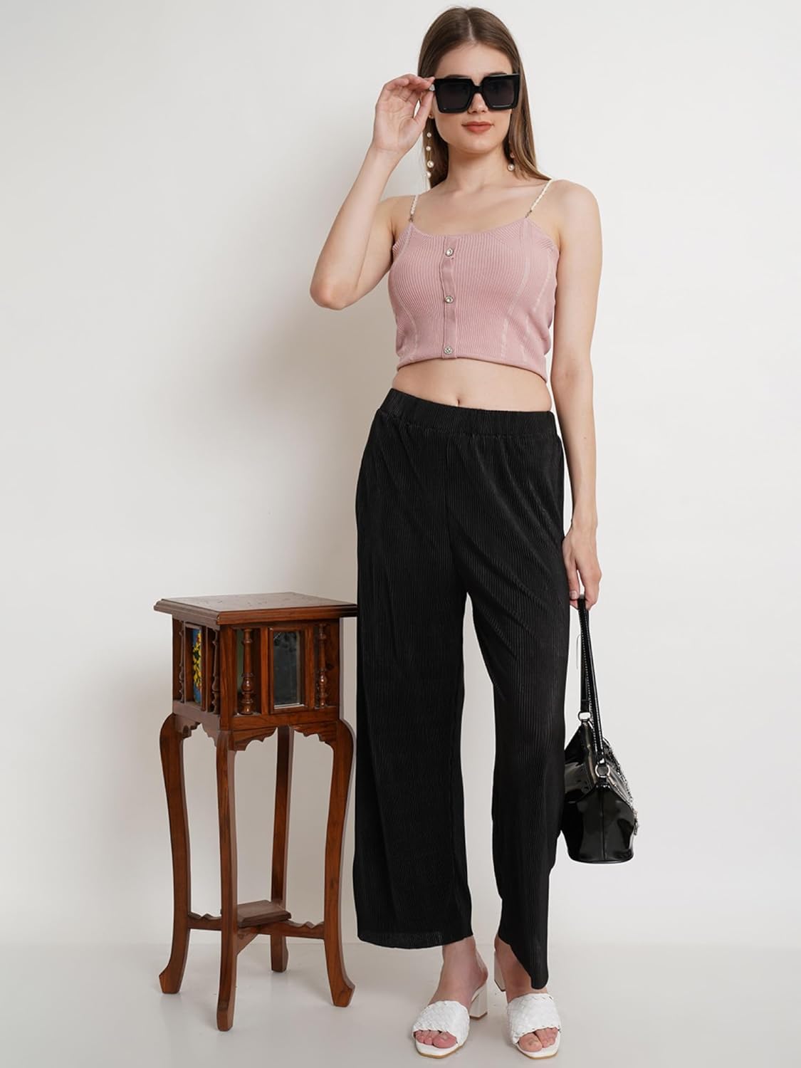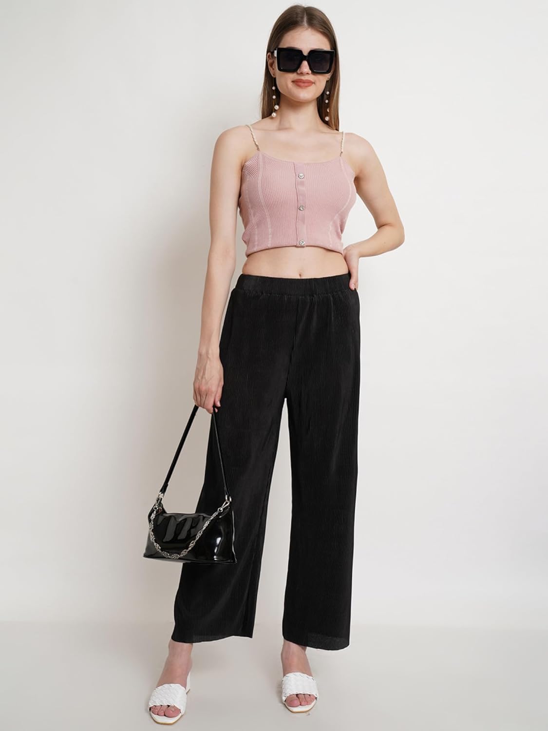Look effortlessly polished in these POPWINGS casual trousers for women. The wrinkle-resistant polyester fabric ensures you look sharp all day long, while the loose fit provides a relaxed and comfortable feel. The wrinkled design of these loose trousers for women adds a touch of unique style without being overwhelming. The pull-on design makes them easy to slip on and go, and the high-rise waist flatters all figures. Wear them for work with a blazer and blouse, or keep them casual with a t-shirt and sneakers. The light polyester fabric makes them easy to care for. These versatile pull on trousers for women are a perfect addition to your wardrobe for any occasion.