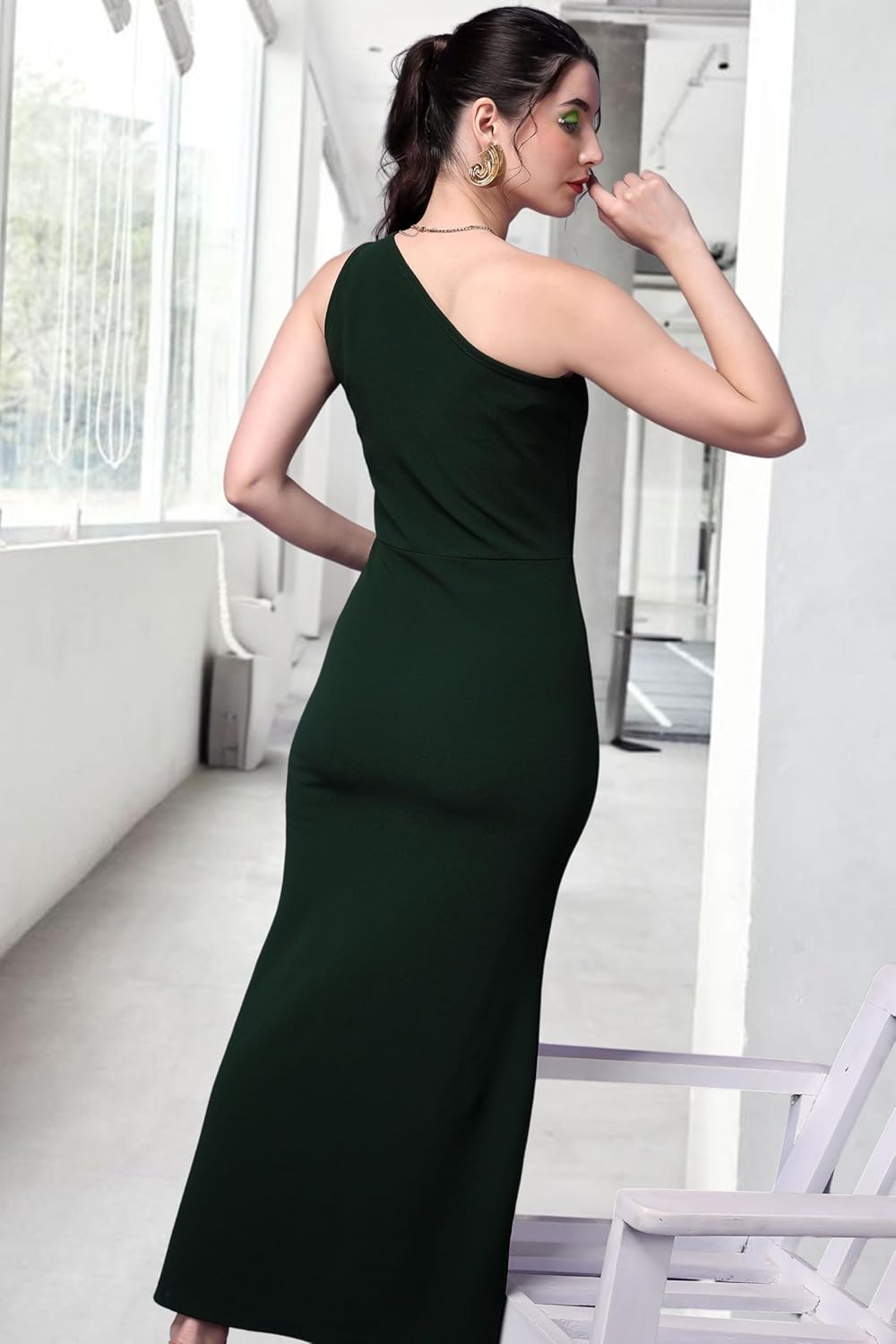Elevate your style with this stunning long slit bodycon dress, crafted from soft, lightweight polyester fabric for ultimate comfort. Designed with a trendy asymmetrical neckline and a chic one-shoulder pattern, this dress effortlessly combines fashion and functionality. The stylish side slit adds a touch of allure, making it perfect for any occasion. Pair it with statement earrings and high heels to complete the look. Ideal for casual events, romantic date nights, or special celebrations, this versatile dress is your go-to choose for a timeless, elegant appearance. Make a statement wherever you go!