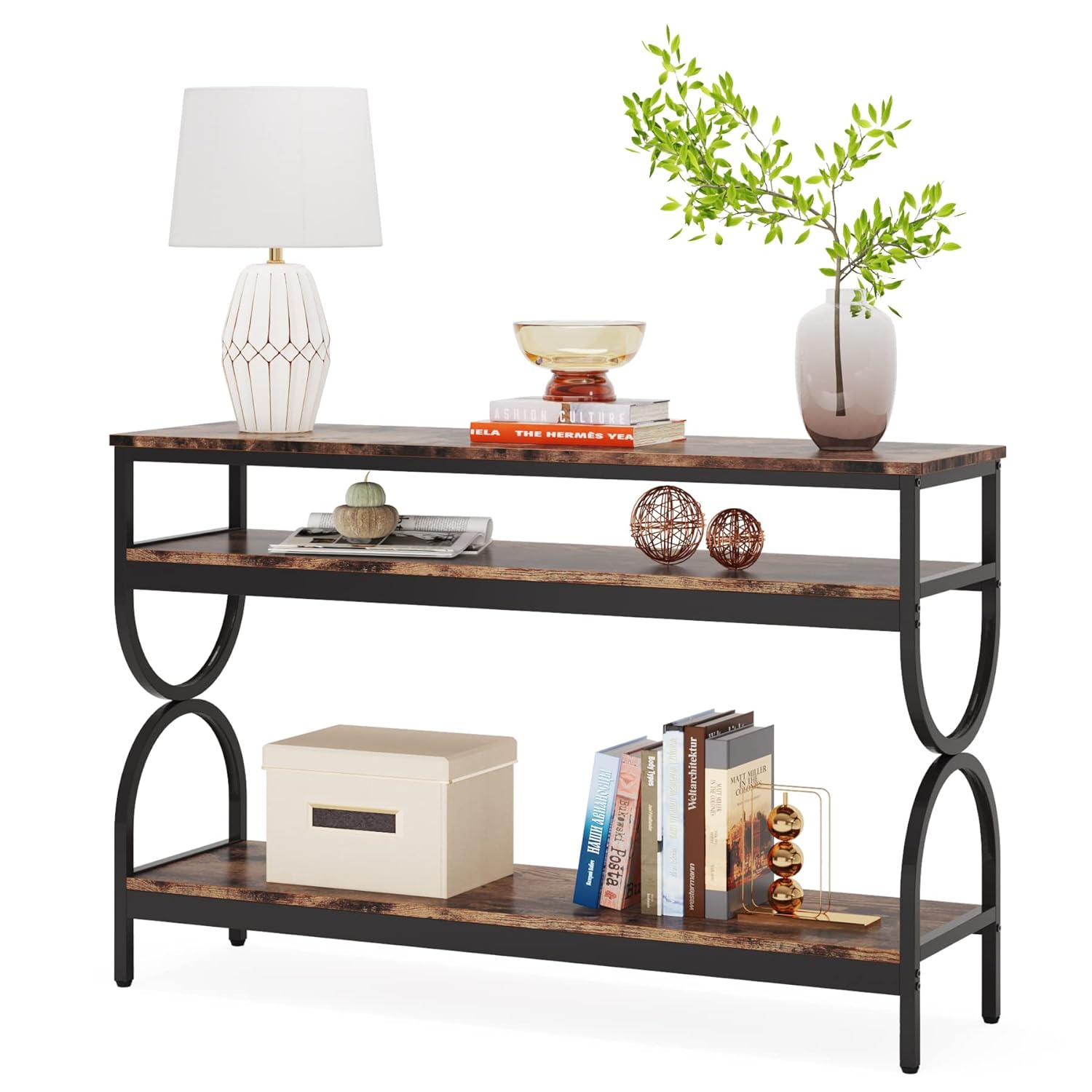 Priti Engineered Wood 3-Tier Console Table, 55 Inch Sofa Table With Open Storage Shelves, Narrow Long Hallway/Entryway Table For Home Living Room Entryway, Rustic Brown