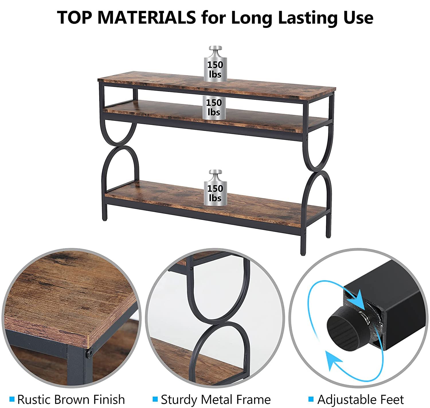 Sturdy & Durable?: Constructed with brown manufactured wood and a black powder-coated iron base, this 55.1 L * 11.8 W * 35.4 H-inch console table is designed to hold a total weight capacity of up to 450lbs.