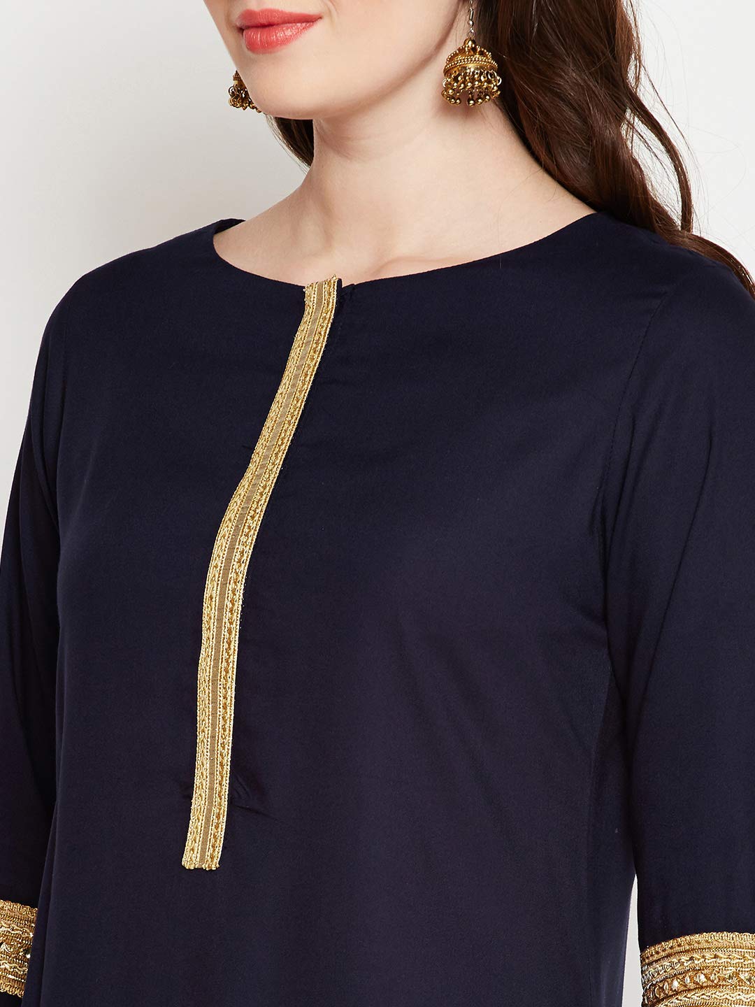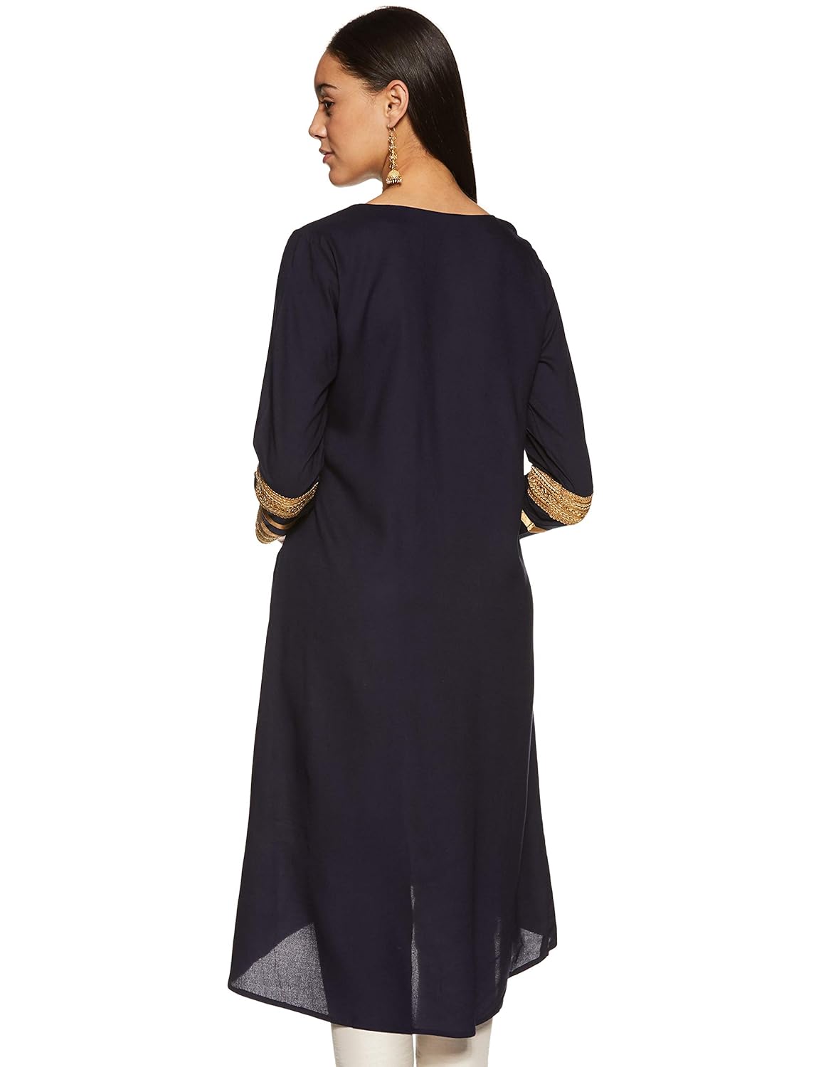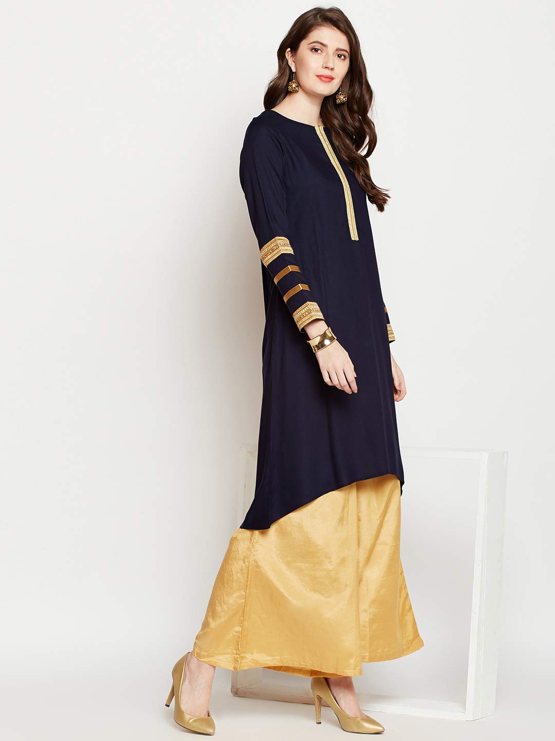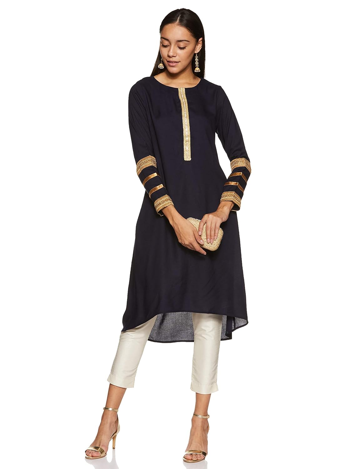 This kurtha is from RARE ROOTS brand. It is made of viscose rayon and is Green in color. Also has round neck with long sleeves.