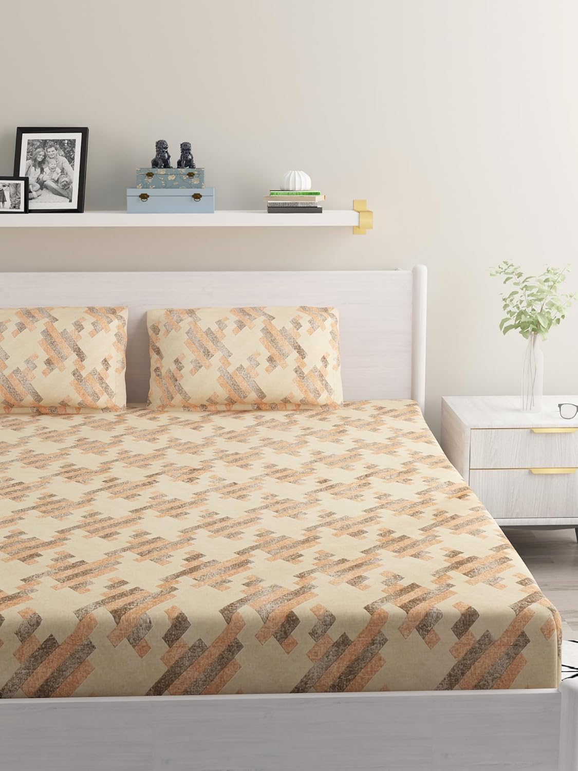 Pillow covers match the bedsheet prints, enhancing the overall consistency of the bedding ensemble and adding a sense of cohesion