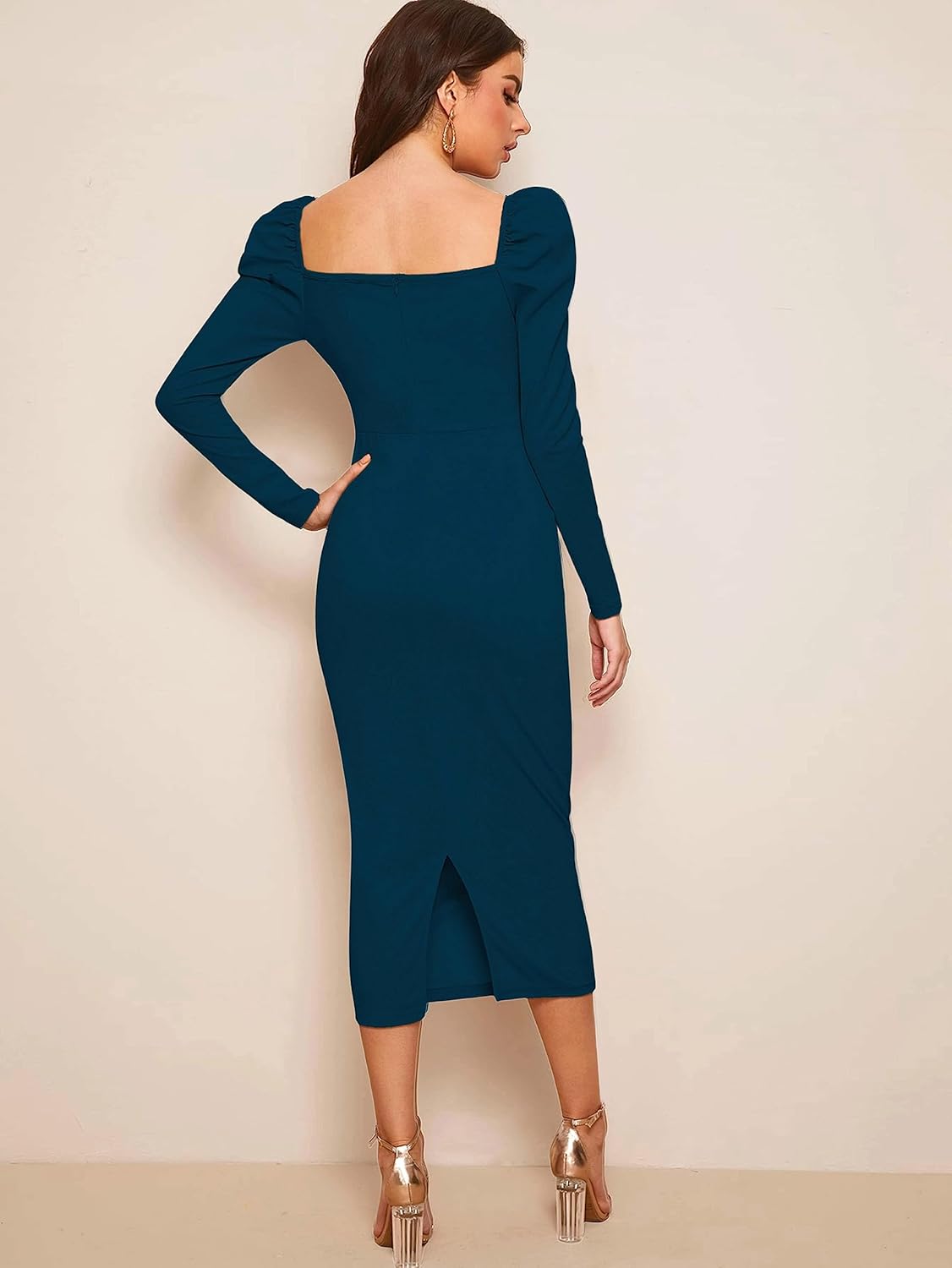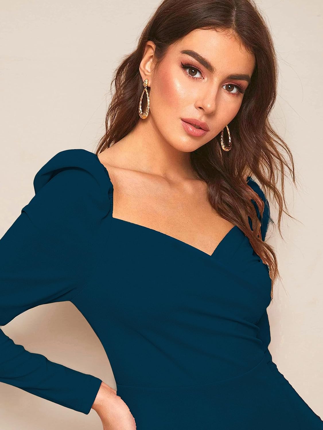 This dress is designed with a Sweetheart Neck design and Full sleeves for a comfortable wearing. This design will make your neck look more defined and give a smarter fit.