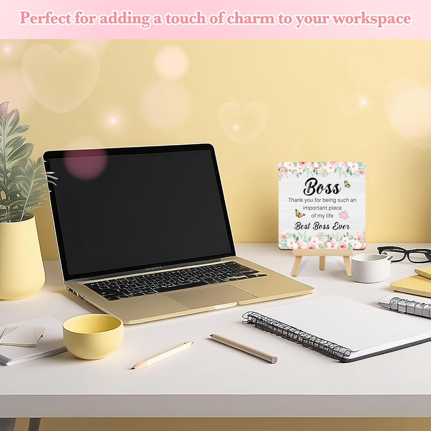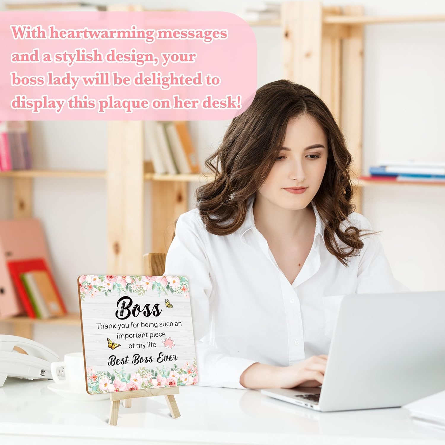 Sarvada Decor Employee Appreciation Gifts, Thank You Gift for Teacher Boss Coworker, Floral Wooden Plaque with Easel for Home Office Desk Decor