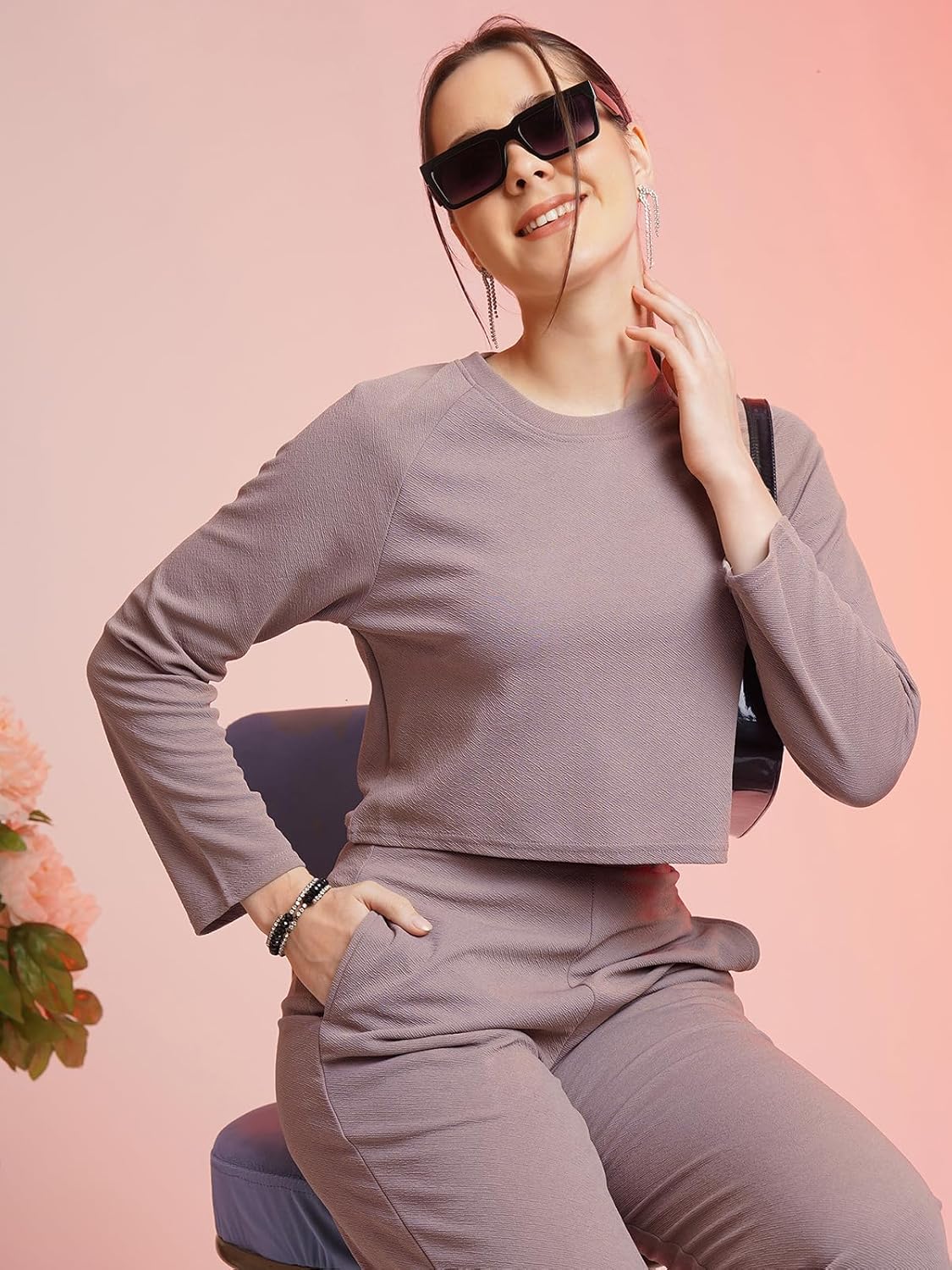This Light Pink co-ord set comes with a single breasted Crop Top & Trouser 2 Piece Co-ords Set which adds on to the utility factor in the same pattern. The Solid Lycra co-ord set is patterned in a way which gives an elongated effect. Perfect for your daily office wear and can be layered and worn with anything.