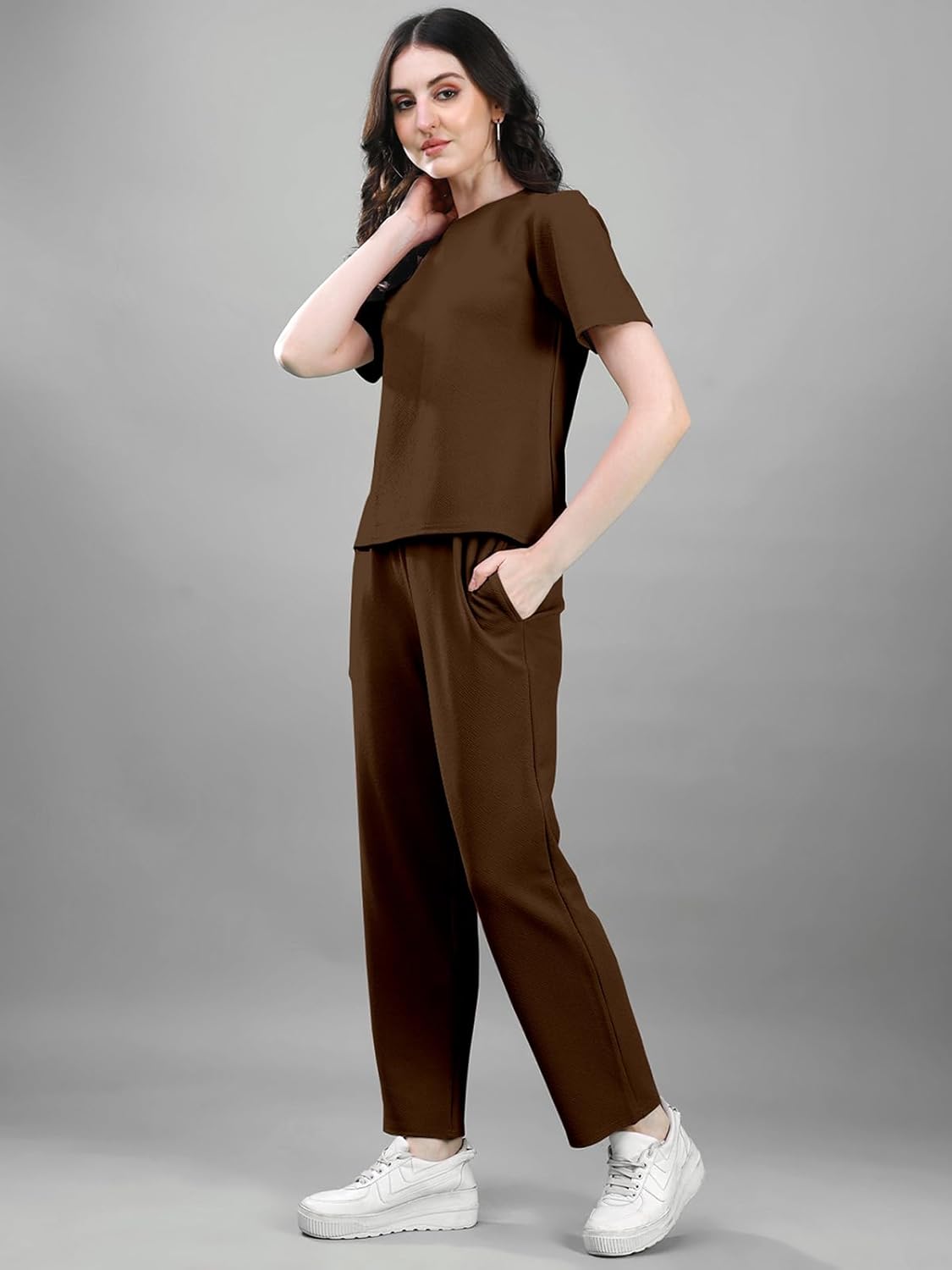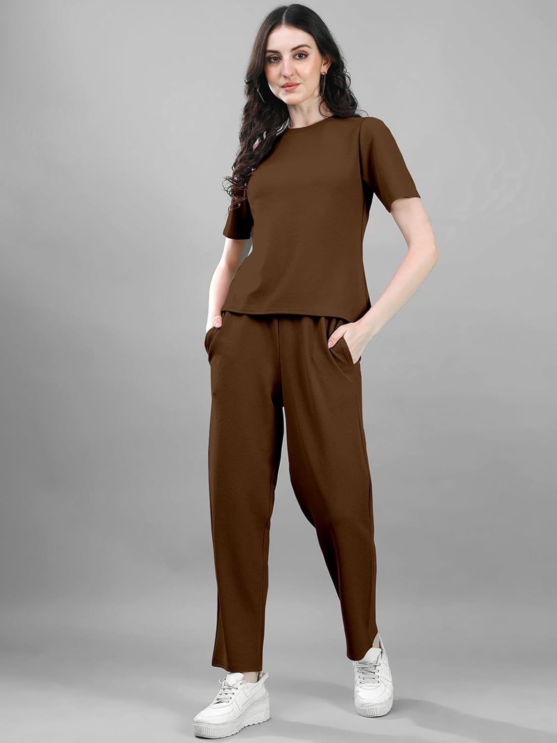 Selvia Women’s Co-ords Set|Lycra Top and Trouser Set|Casual Co-ords Set for Women|Two Piece Co-ord Set|Top & Pant Set