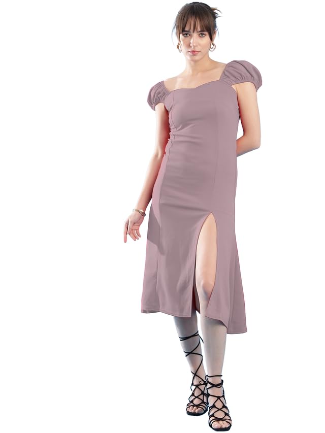 This Dress Is Made of Selvia Fabric, Crafted for Every Comfort. This Selvia Sheath Bodycon Short Puff Sleeve Solid Work Brown Color Sweetheart Neck Dress Dress to Make It Suitable For Daily Party or Evening Wear.