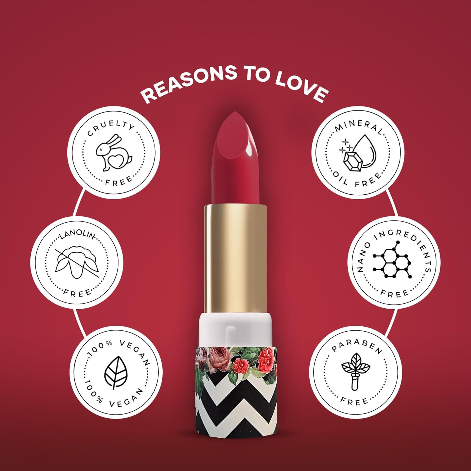 Hydration-Locking Benefits: Infused with Vitamin E, Candelilla Wax, Castor Oil, and Carnauba Wax, this lipstick provides deep hydration and locks in moisture. Your lips will feel nourished, supple, and plump.