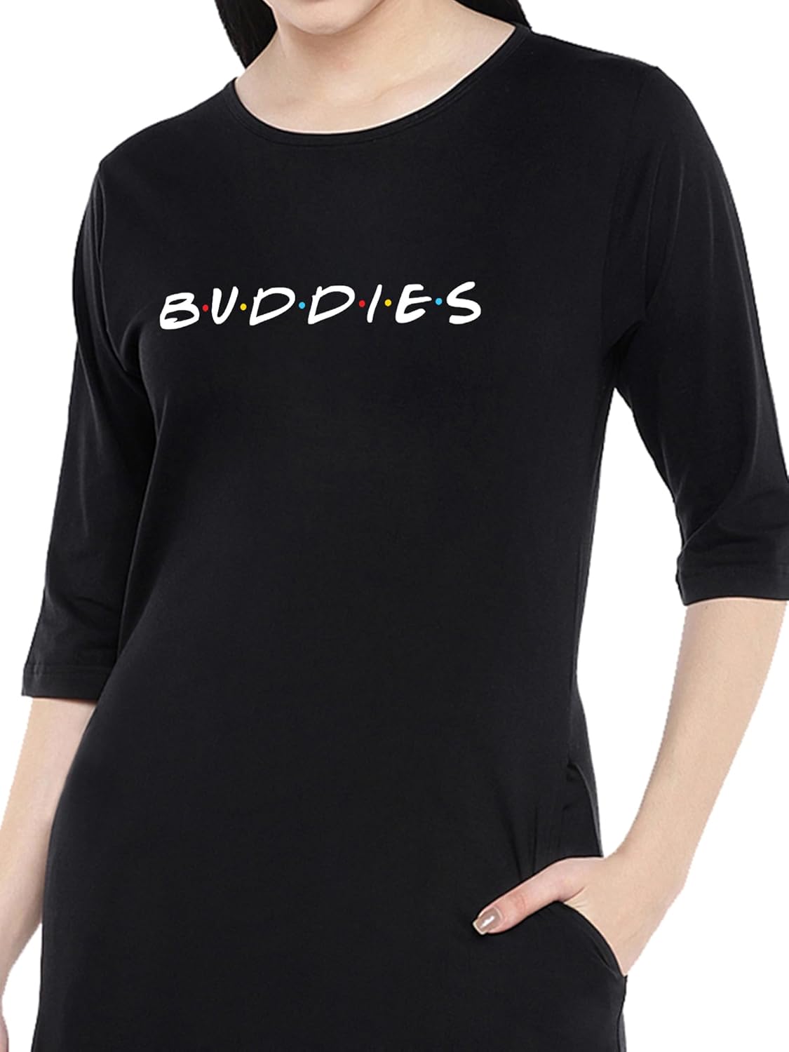 Shediators brings to you this limited edition printed round neck long t-shirt for women. This stylish regular fit t-shirt dress will keep you at ease all day long, courtesy the cotton fabric. Simple yet trendy, this tshirt dress is designed as per the latest trends and fashioned using best quality cotton material. 100% superior cotton long tshirts tops for womens with enzyme treatment, breathable fabric which allows air circulation and keeps you cool.