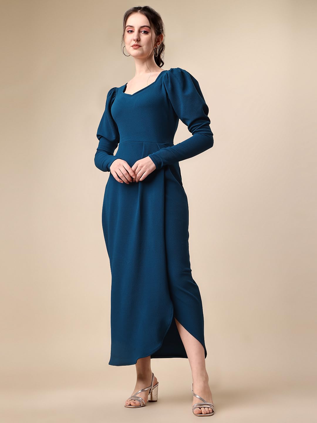 Easy and elegant, pick this skater dress to give your closet an effortless sartorial update. Tailored in a swiss dotted fabric, the dress features a smocking detail and ruffles along the hem .it come with long puff sleeves. Style Tip: Complete the look with heels and a ting sling.