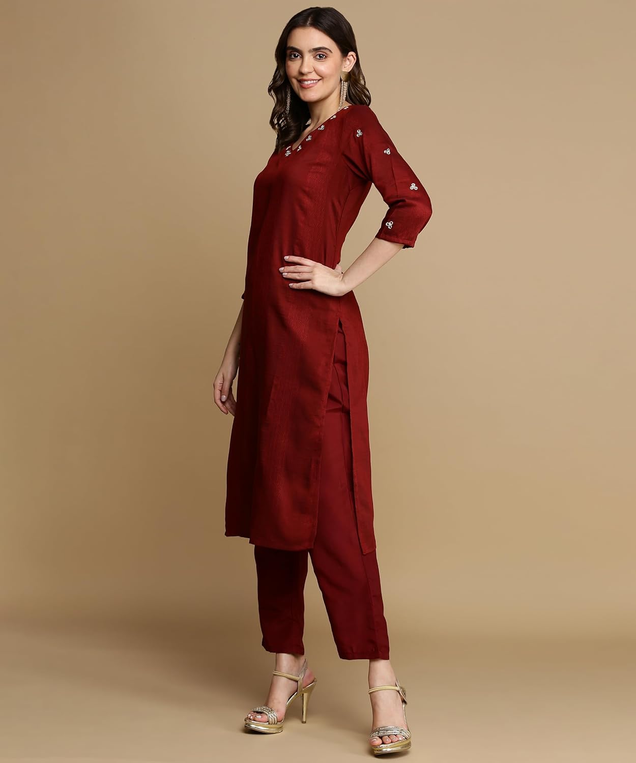 The brand has been making continuous efforts to enhance its product range by incorporating the latest technological developments and innovations. It’s fine finish and latest designs for women are trendy and stylish. It is well suited for casual as well as work wear. It is the perfect choice for any occasion. This kurta set for women is lightweight and soft on your skin. This suit set has a soothing colour and is made of cotton hence it will lend you a fresh look any season.