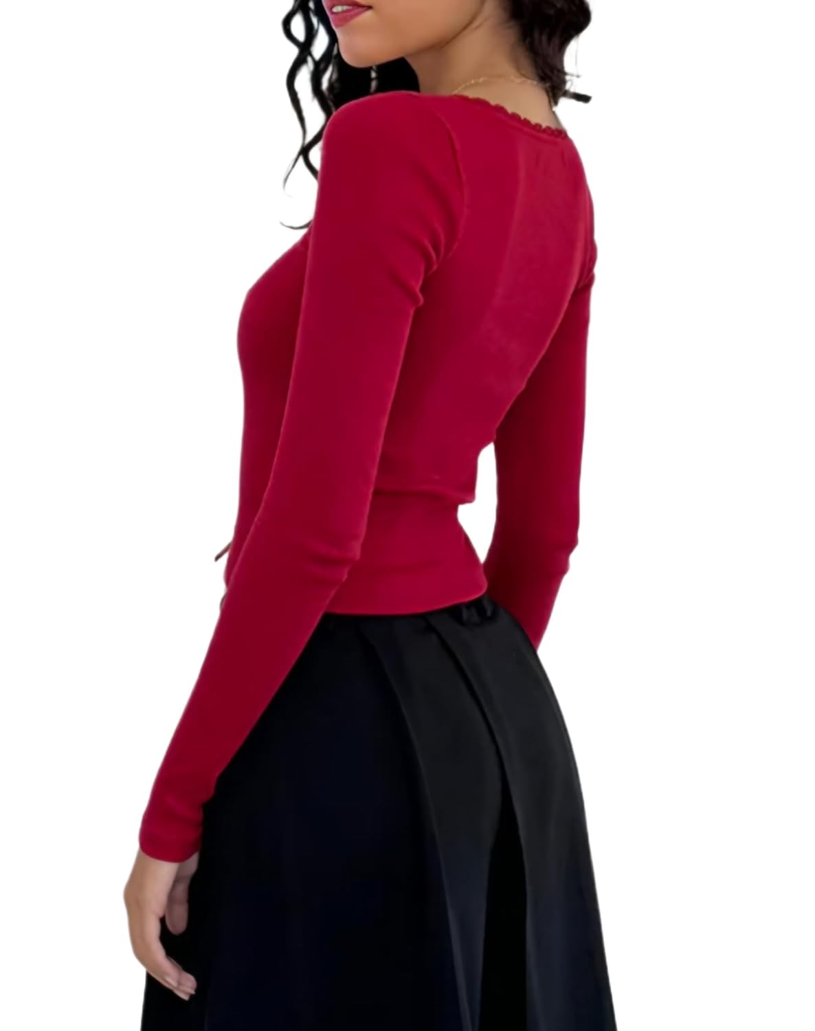 SIGHTBOMB SQUARE NECK LACE DETAIL CROP TOPS FOR WOMEN
