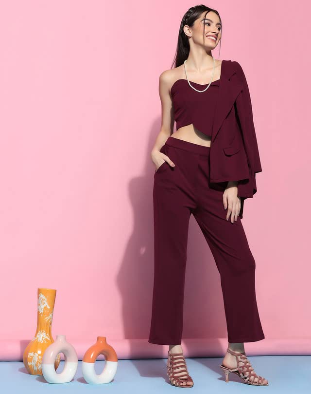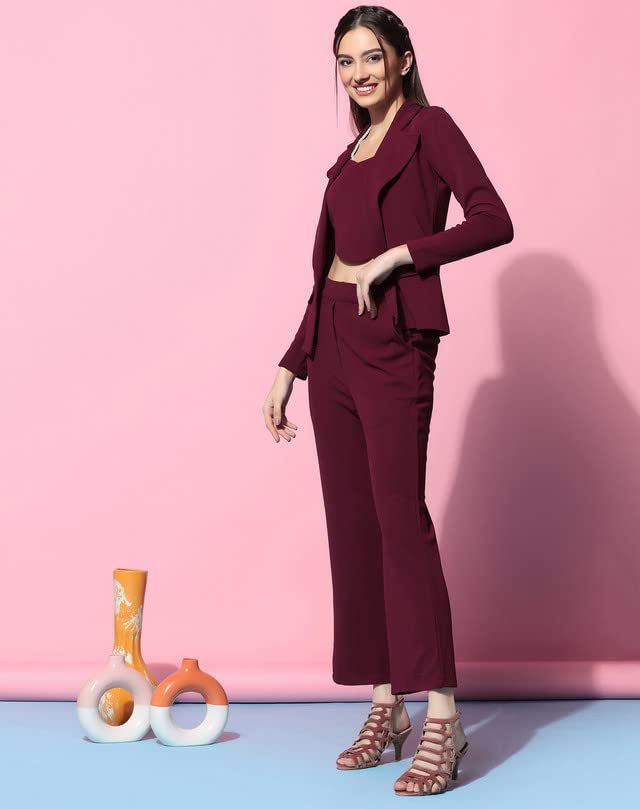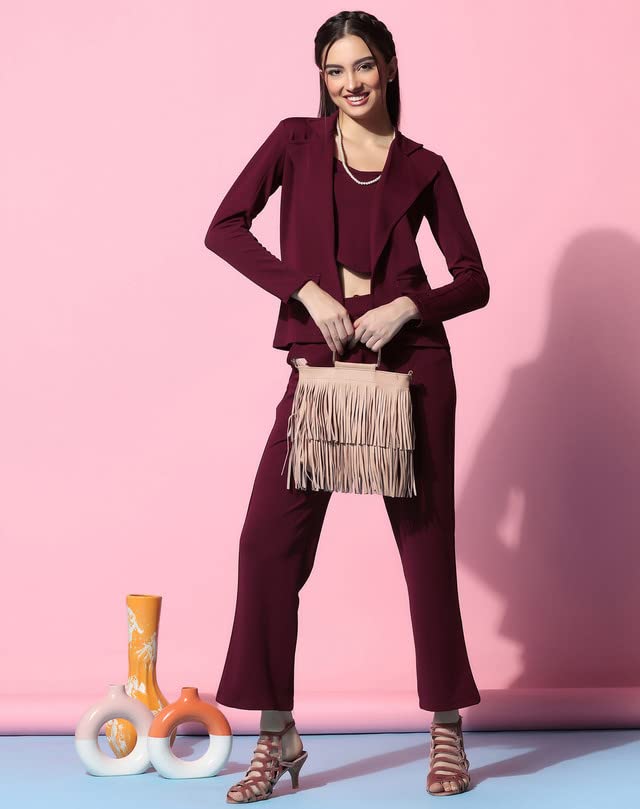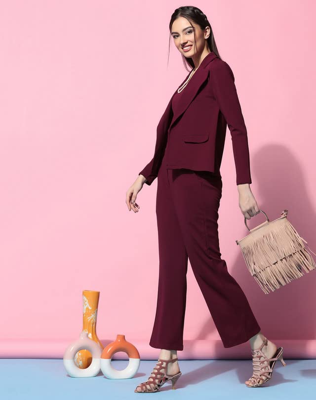 This co-ord set comes with a single breasted Top and Bottom Set which adds on to the utility factor in the same pattern. The co-ord set is patterned in a way which gives an elongated effect. Perfect for your daily office wear and can be layered and worn with anything.