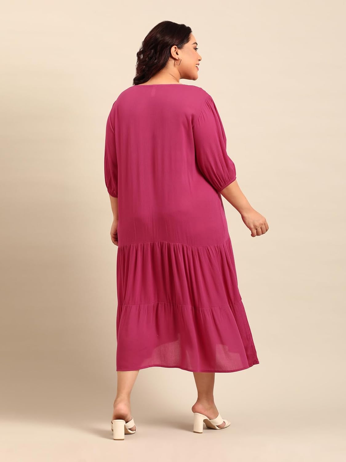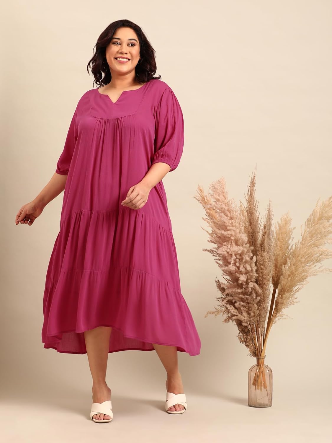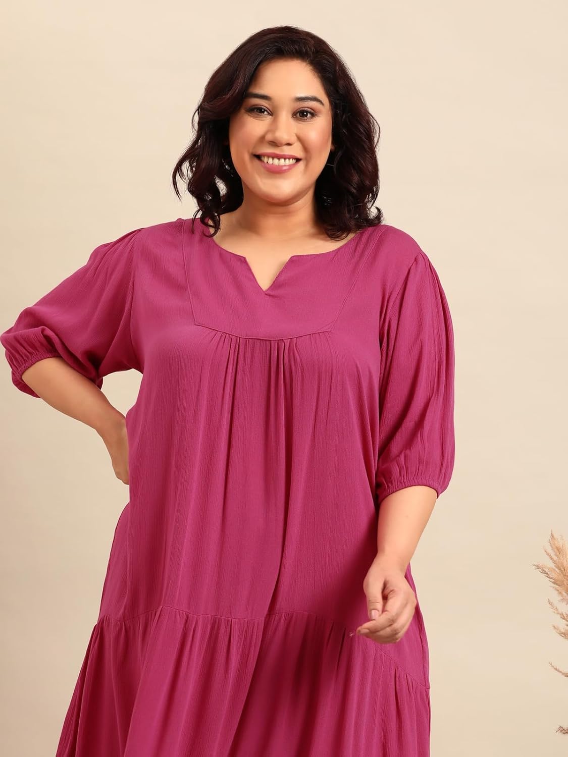 Spruce up your wardrobe with this Plus Size Dress from The Pink Moon available on Amazon. This Plus Size Dress has Printed as pattern type and is perfect for a day out with friends or a night of get-togethers with family. Crafted from fabrics, our dress not only feels indulgent against your skin but also showcases a flawless silhouette. The fitted bodice accentuates your curves, while the flowing skirt adds a touch of feminine allure. The knee-length hem strikes the perfect balance between elegance and comfort, making it suitable for a variety of occasions