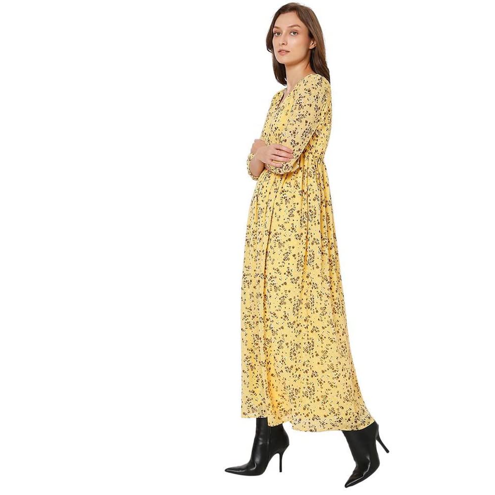 Vero Moda Women 100% Polyester Printed Gold Regular Fit Dress
