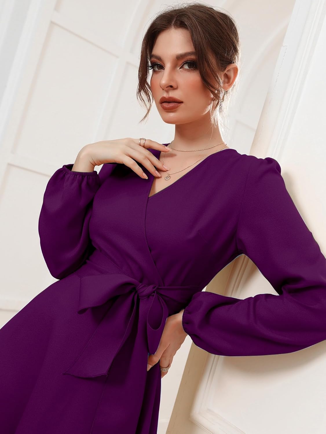 Descriptions:  This Western A-line long bishop sleeve belted midi-maxi Dress Ideal for any Body Type, V neck / maxi / fullsleeve / stretchable / Regular fit and Flare plain casual dress, suitable to spring summer, autumn and winter, suitable to dinner,birthday party,wedding,engagement,dates,movie,club,etc.due to people have different taste in clothing as you know, someone like a slim(snug) fit, someone prefer a little loose (relax) fit, so please choose size according to size. This is basic style, make you beautiful, fashionable and elegant. Women’s Basic Beautiful western A-line maxi Dress 100% brand new and in original package by Vivvli Retail.Lightweight, soft and good stretchy Unique style, make you beautiful, fashionable, sexy and elegant.