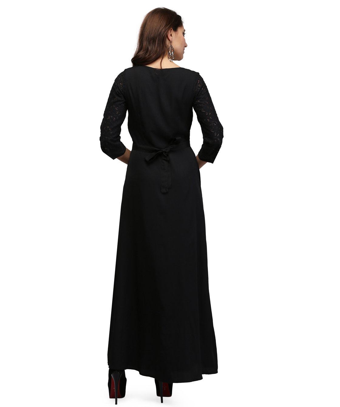 Discover ultimate elegance with the V&M Women’s Black Lace Maxi Dress (VM67) – the perfect long gown for any special occasion. Designed with sophistication in mind, this designer black maxi dress features a stunning lace bodice, 3/4 lace sleeves, and a chic square neckline. The empire waist beautifully enhances your shape, offering a flattering silhouette for all body types, from slim to curvy, making it an ideal choice for women of all sizes. Crafted from premium poly crepe fabric, this dress combines style with comfort, keeping you cool and comfortable while ensuring you look your best at every event. Whether you’re attending a wedding, evening party, formal gathering, or vacation, this maxi dress for women is the ultimate versatile piece that works for all occasions. With practical features like a right-side pocket for convenience and a detachable fabric belt for a personalized touch, this dress is as functional as it is fashionable. The breathable material and easy-care design ensure you can enjoy this gorgeous piece without worry. V&M Women’s Black Lace Maxi Dress (VM67) is a timeless addition to your wardrobe that you’ll love wearing to special occasions, as a gift for your girlfriend, sister, or best friend, or simply for a night out. Elevate your style and confidence in this elegant, chic, and easy-to-wear black maxi dress.
