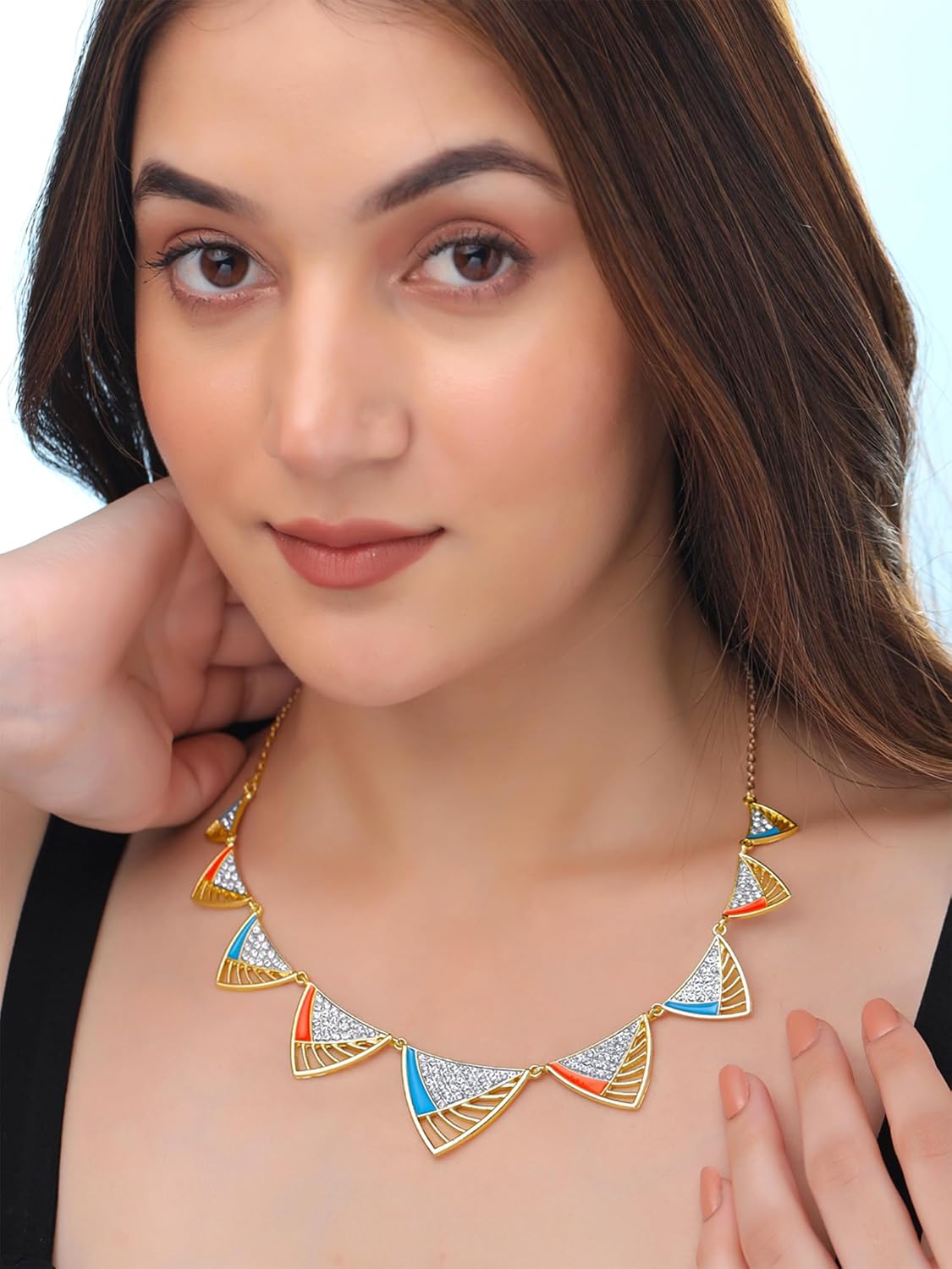 Elevate your style with this stunning Yellow Chimes Gold Toned White Crystal Choker Necklace. This necklace for women is the perfect accessory for any occasion, whether it’s a night out with friends, daily wear to the office or college, or a romantic date night. This versatile piece complements any casual or Western attire and makes a thoughtful gift for girls, making it an ideal present for your mother, friend, or sister on birthdays or anniversaries. The lobster claw clasp ensures easy wearing and removal, while the elegant Yellow Chimes box provides secure protection. This silver chain for women is crafted from gold-plated alloy and features sparkling white crystals that add a touch of glamour to any outfit. The one-size-fits-all design ensures a comfortable fit for most women, and the necklace set for women is perfect for adding a touch of sparkle to any look. Whether you’re dressing up for a special occasion or simply accenting your everyday style, this Yellow Chimes choker is a must-have accessory. Embrace effortless elegance and shine bright with this beautiful and affordable piece of jewelry that complements your personal style.