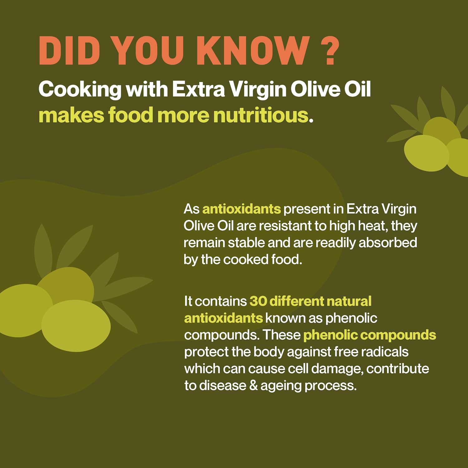 RICH FLAVOUR – Our Extra Virgin Olive oil is the Gold Standard for taste and health. It has a mild buttery flavour that can add depth and complexity to a dish. It is perfect for roasting, baking, dressing and marinades. Our Cold Pressed Extra Virgin Olive oil is the perfect blend of Health, Taste and Aroma.